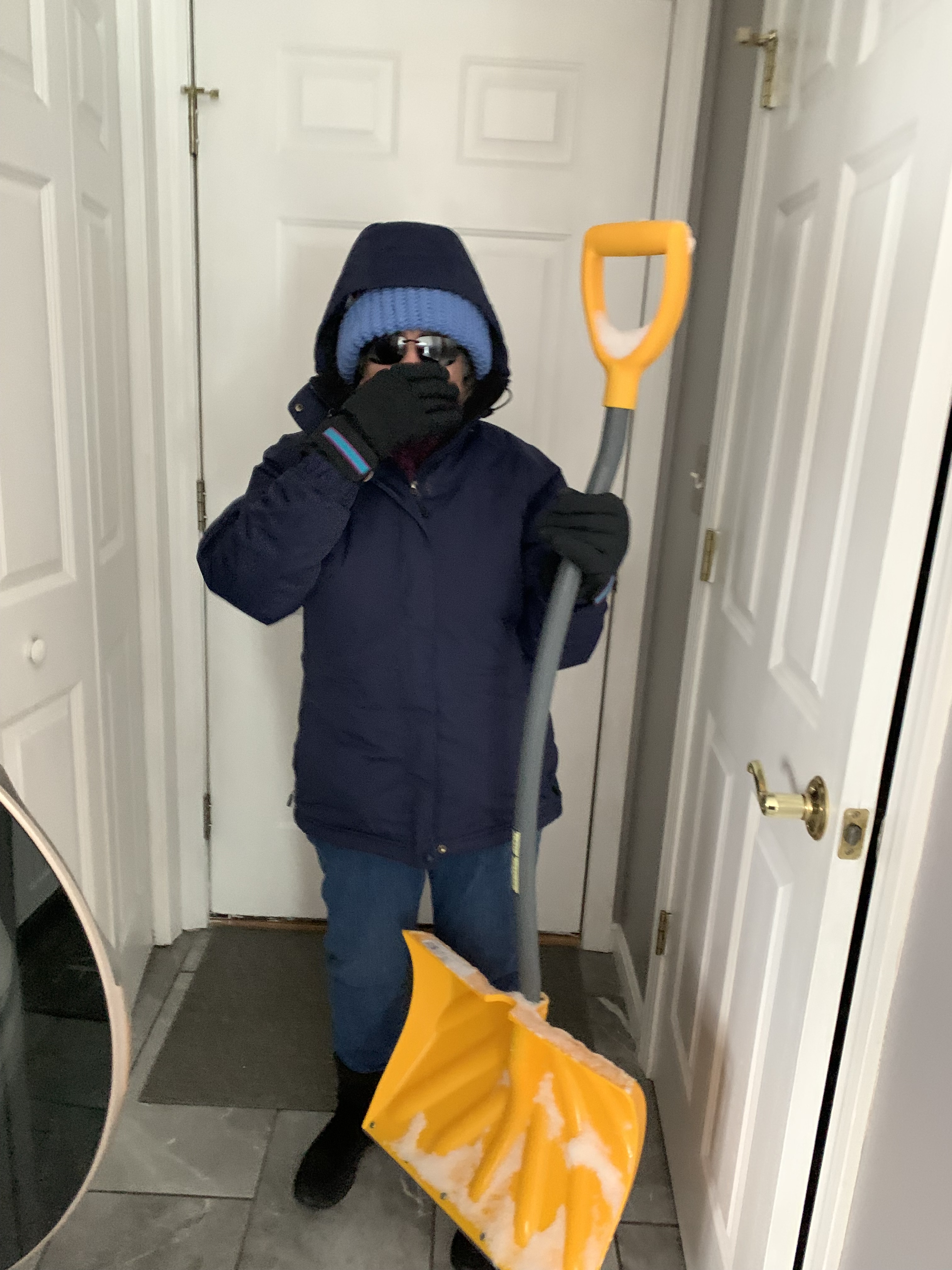 Well, I bundled up with a hat and snuggle (I made), thick gloves, heavy coat with hood, warm socks, boots (all llBean) and fingers crossed that didn’t fall down and couldn’t get up!! 😱