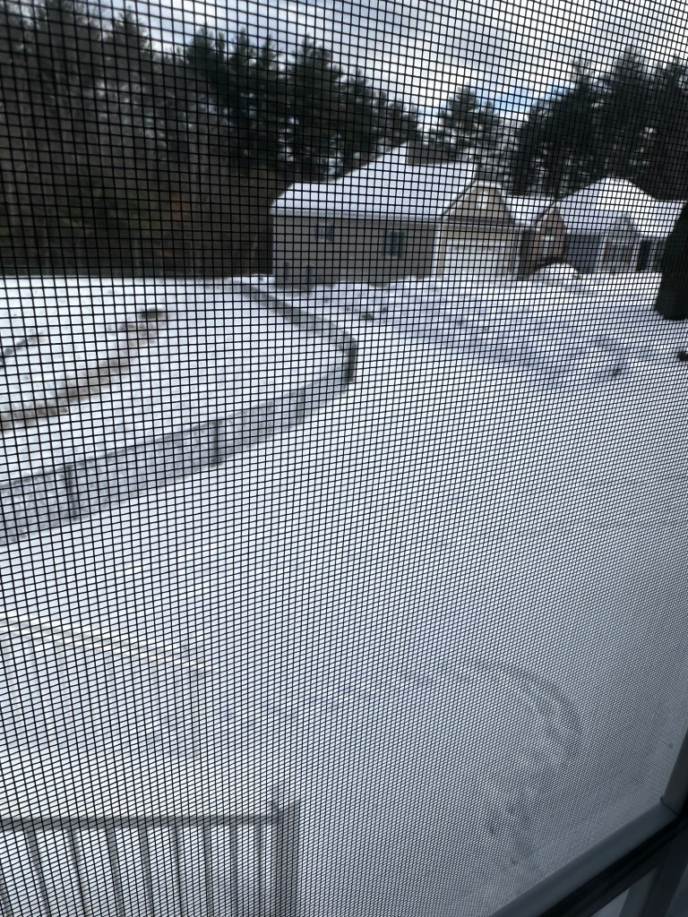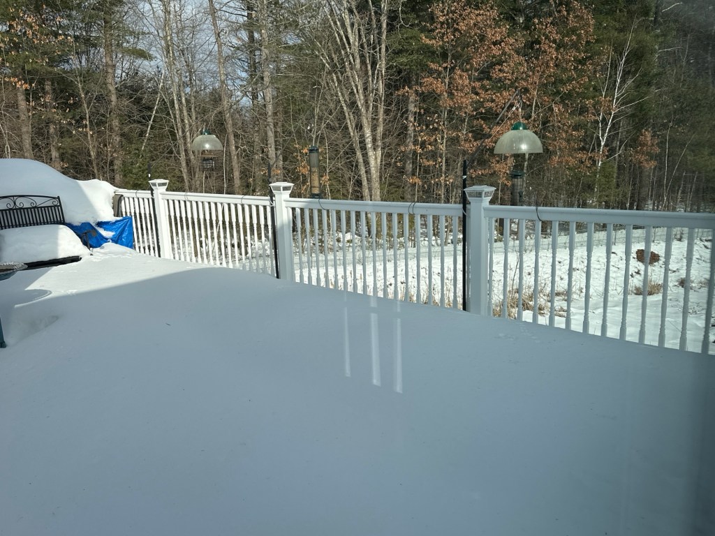 The snow is so high on our back deck that I can’t open the slider because the snow falls inside. I haven’t ventured out there because I am afraid that it may collapse from the weight of the snow with me on top.
