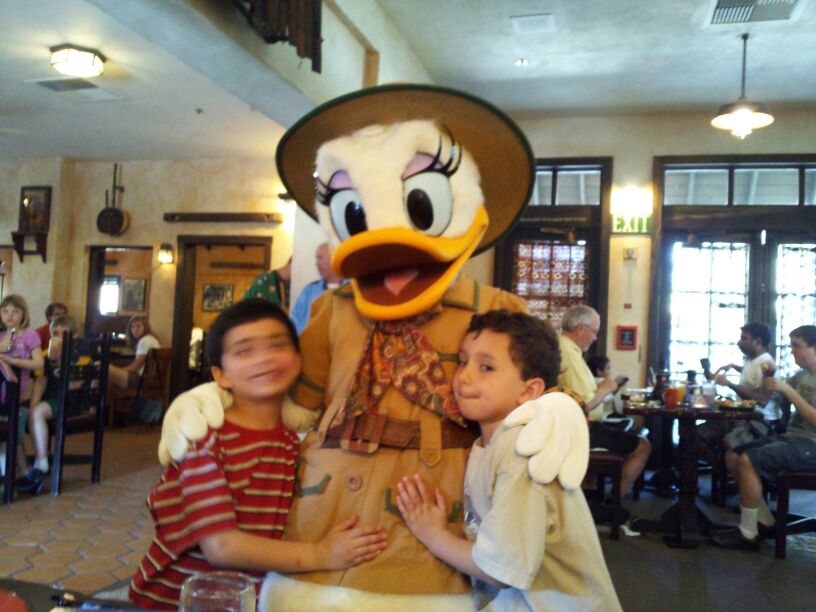 We went to a few character breakfasts and dinners where the characters are in full swing. The boys just loved visiting with Mickey, Minnie, Goofy, Pluto, Donald, Daisy, et el. They posed endlessly with all of them and of course had their autograph books with them. Bless all the people who pose as the characters for their abundance of energy and enthusiasm to be with hundreds of children and adults every day. My favorite was Minnie!