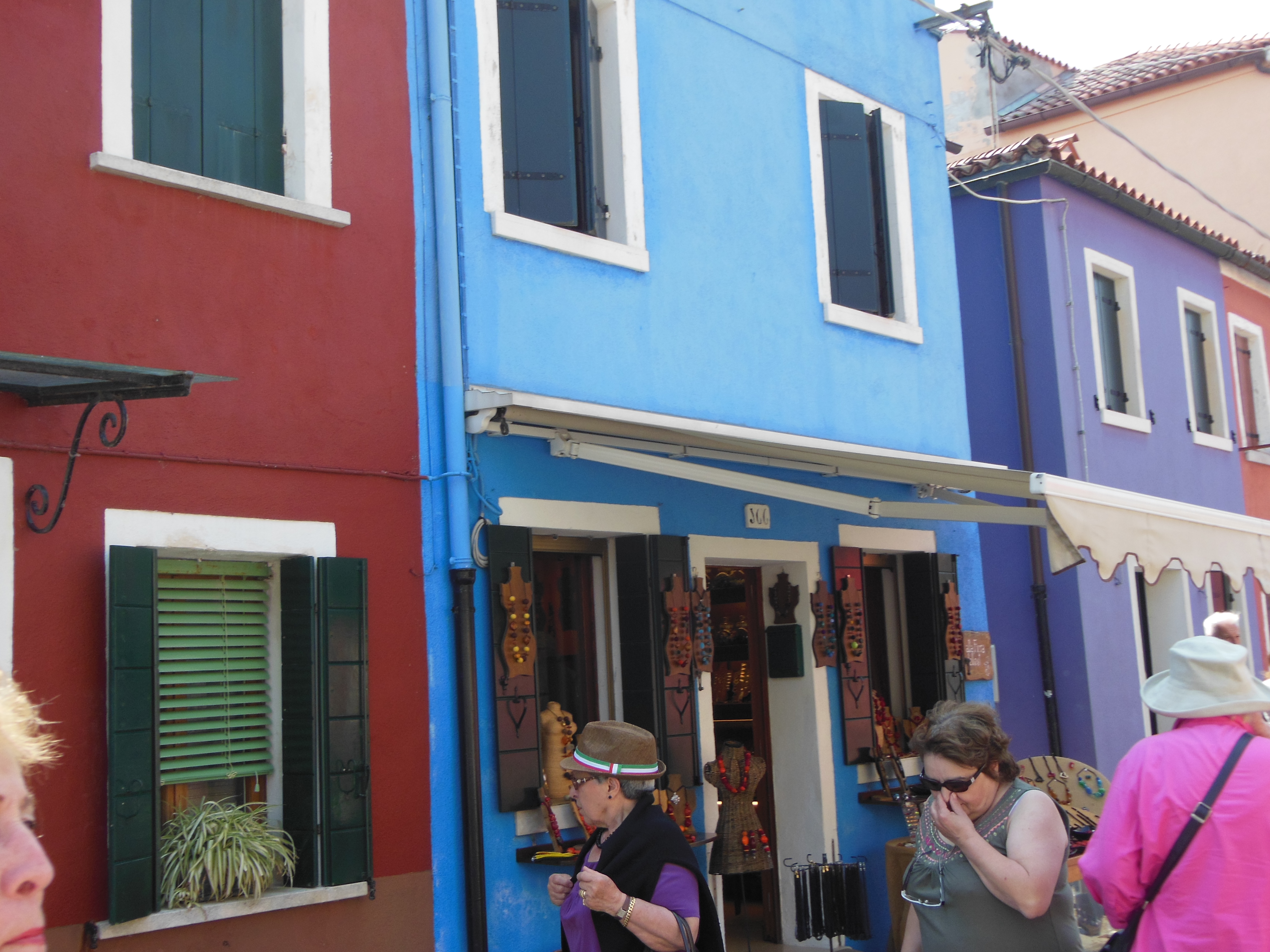 Then another cruise across the lagoon to the island of Burano where we enjoyed a delicious seafood meal with many courses. Food was wonderful and it kept coming and coming. We couldn’t move and had to take a walk around quaint Burano to feel better. Burano is lovely and colorful. The houses are all different colors as you can see from the picture below.