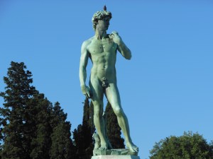 The highlight was seeing the statue of David which was incredibly beautiful and lifelike. His hands and feet were sculptured larger to balance the rest of the statue so our guide told us. David was in danger of falling over so they have had to bring him indoors and reinforce him in sections and glass him in. He was no less impressive to look at! We were not allowed to take photos of the actual statute and had to settle for a copy below.
