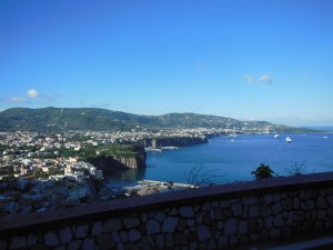 In Sorrento we visited the wood-working factory, Notturno, where I purchased a jewelry box that is incredibly detailed and beautiful! It was being shipped to me and I should receive it soon. I will take a picture and post it later. I can’t wait to get it!  Beautiful views of the countryside are in the first picture and the second is the view from our balcony at our hotel.