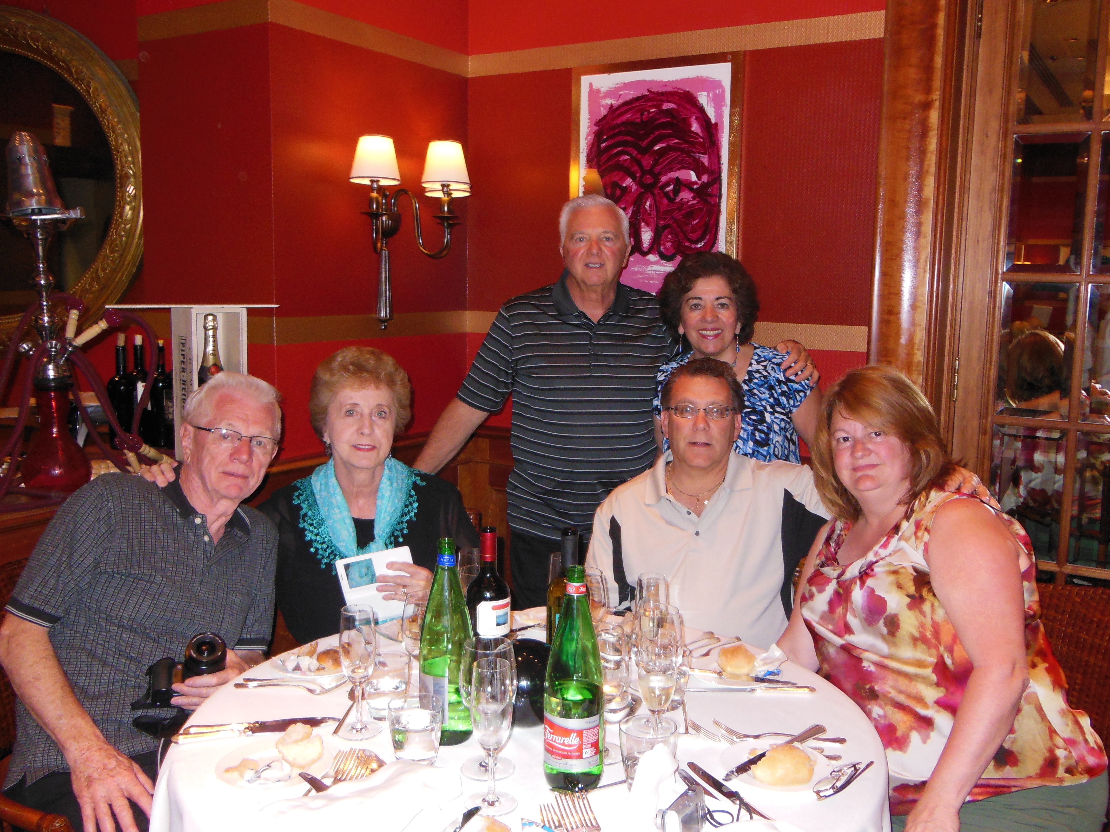 This was a trip of a lifetime and it will always be remembered in my blog with my pictures if not always in my fading memory bank (brain).  The most amazing thing about going on a tour with Trafalgar or any other company you meet strangers and become like a family at the end of the tour.  We made some wonderful new friends with whom we will keep in touch and possibly travel to other lands together. Hi Gloria & Roy and Joni & Brian! Miss you all!  Here is our last night together with our new friends.