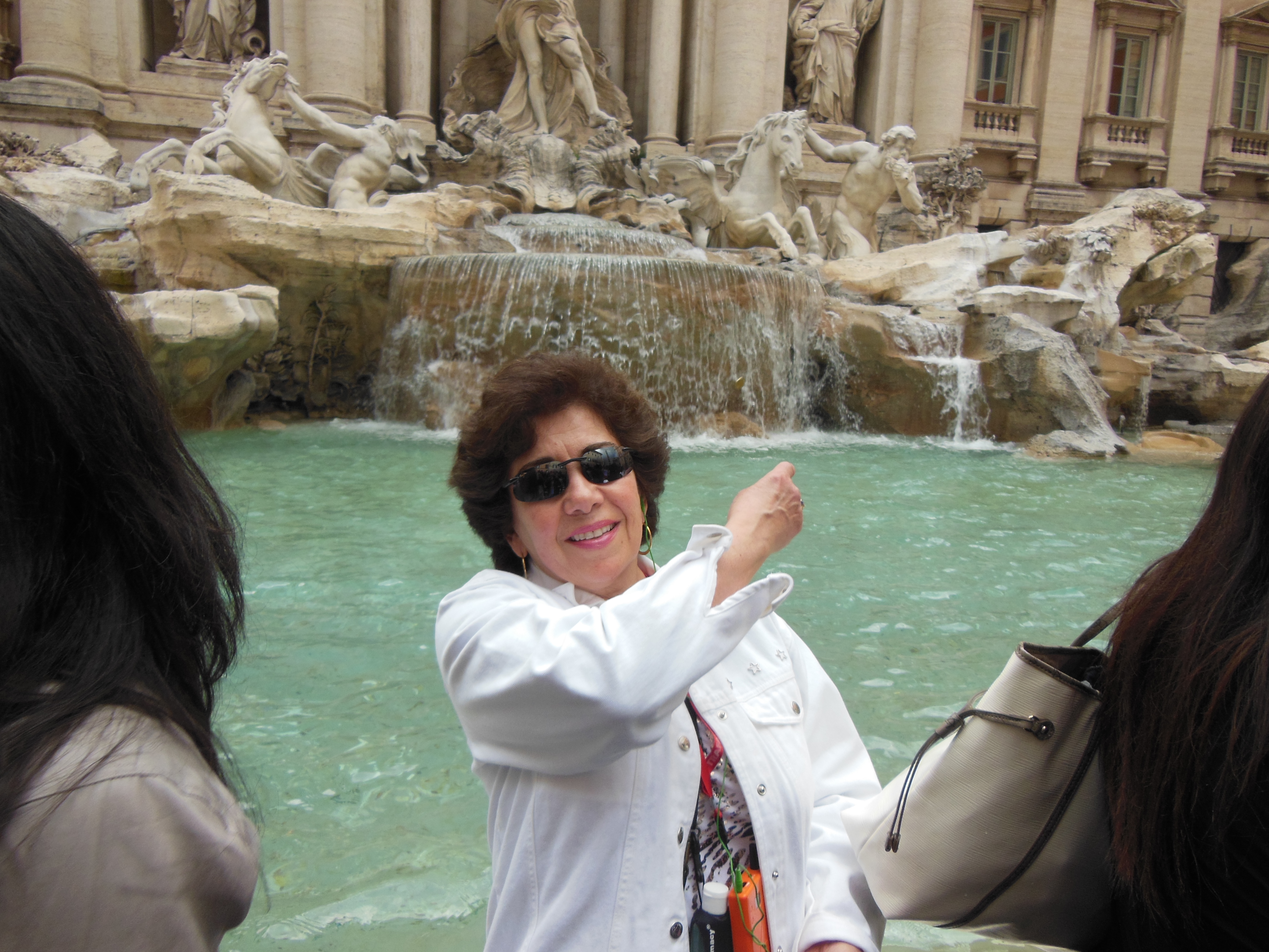 We visited the Trevi Fountain where I tossed three coins and made three wishes which I cannot share.  Hope at least one of them comes true.  The area around the fountain was so packed with visitors that we had to elbow our way in just to get close enough to toss in the coins.  The Spanish Steps was much the same – very crowded.  There must have been three hundred people sitting on the steps preventing us from taking a picture of the steps alone.  We had to take a picture of these three hundred or so people sitting on the steps. The photo is not worth posting here.