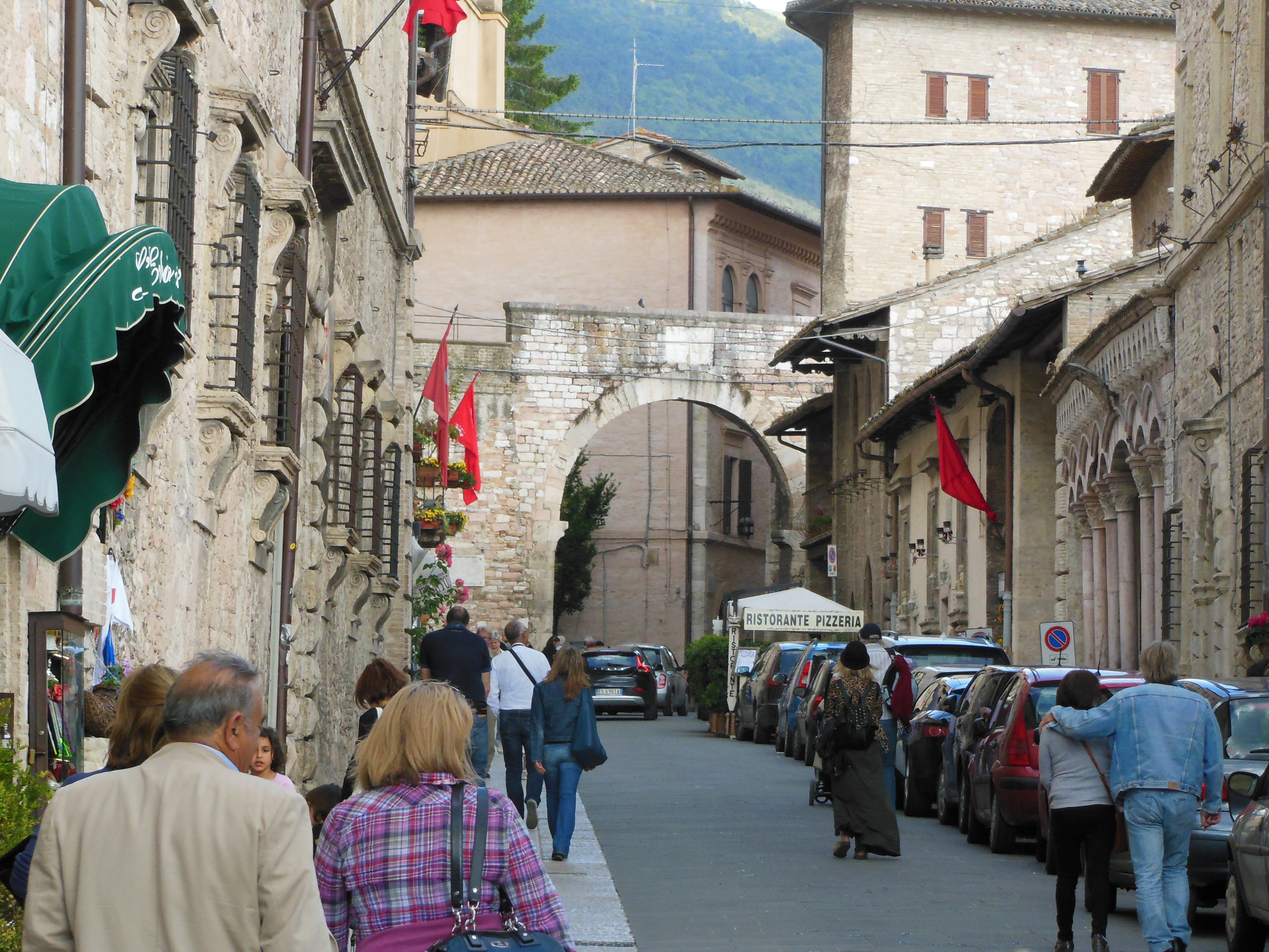 Assisi was our next stop to visit the Basilica of St. Francis. The chapel was emotional and stirring as we viewed the frescoes depicting St. Francis’ life, a much-loved saint. He was known to be able to talk to the birds. My husband purchased a St. Francis Statue to put on our mantel.  He thinks of himself as a feeder of birds but no saint! We couldn’t take pictures inside the Chapel so here are some from the outside.