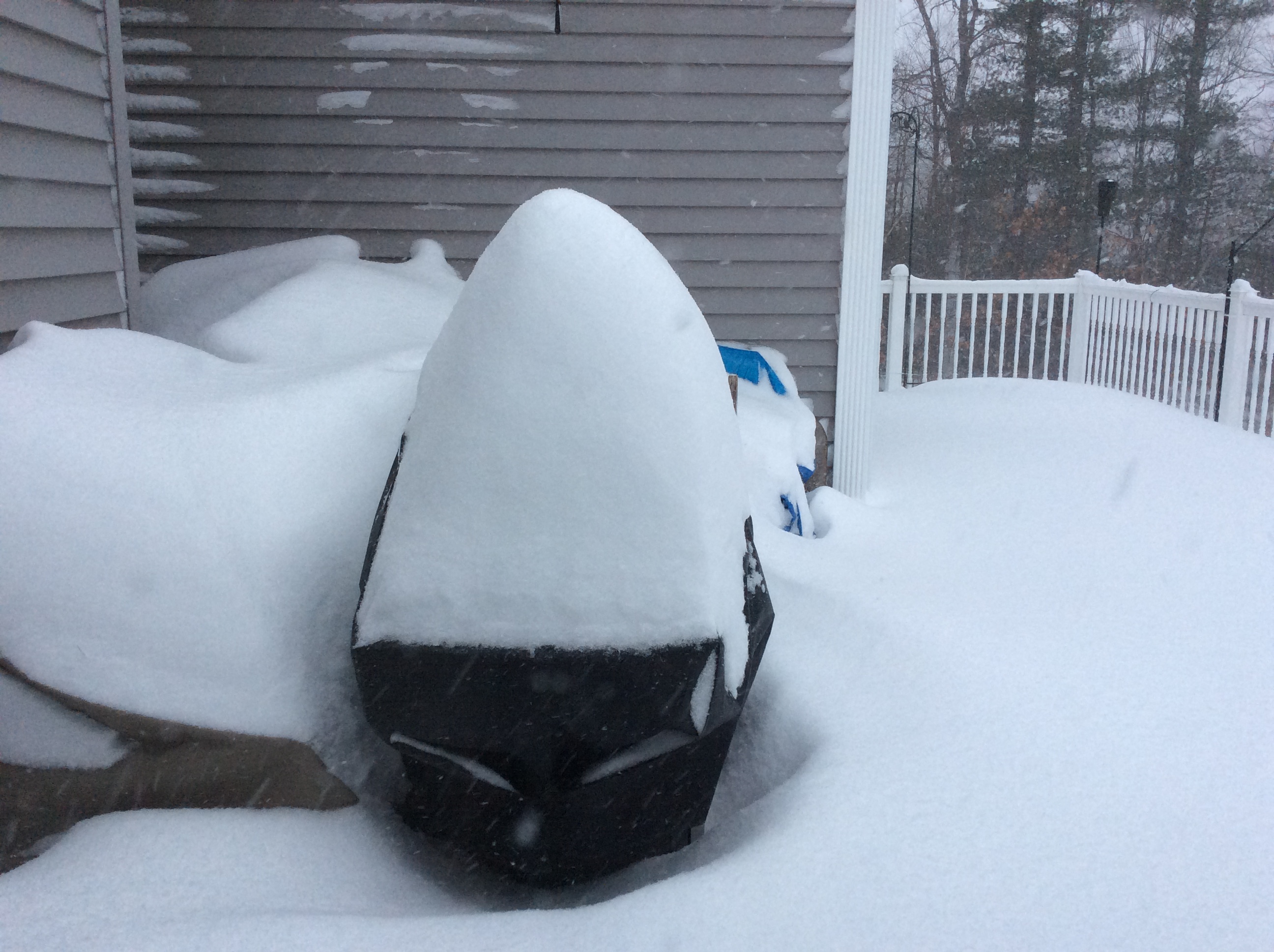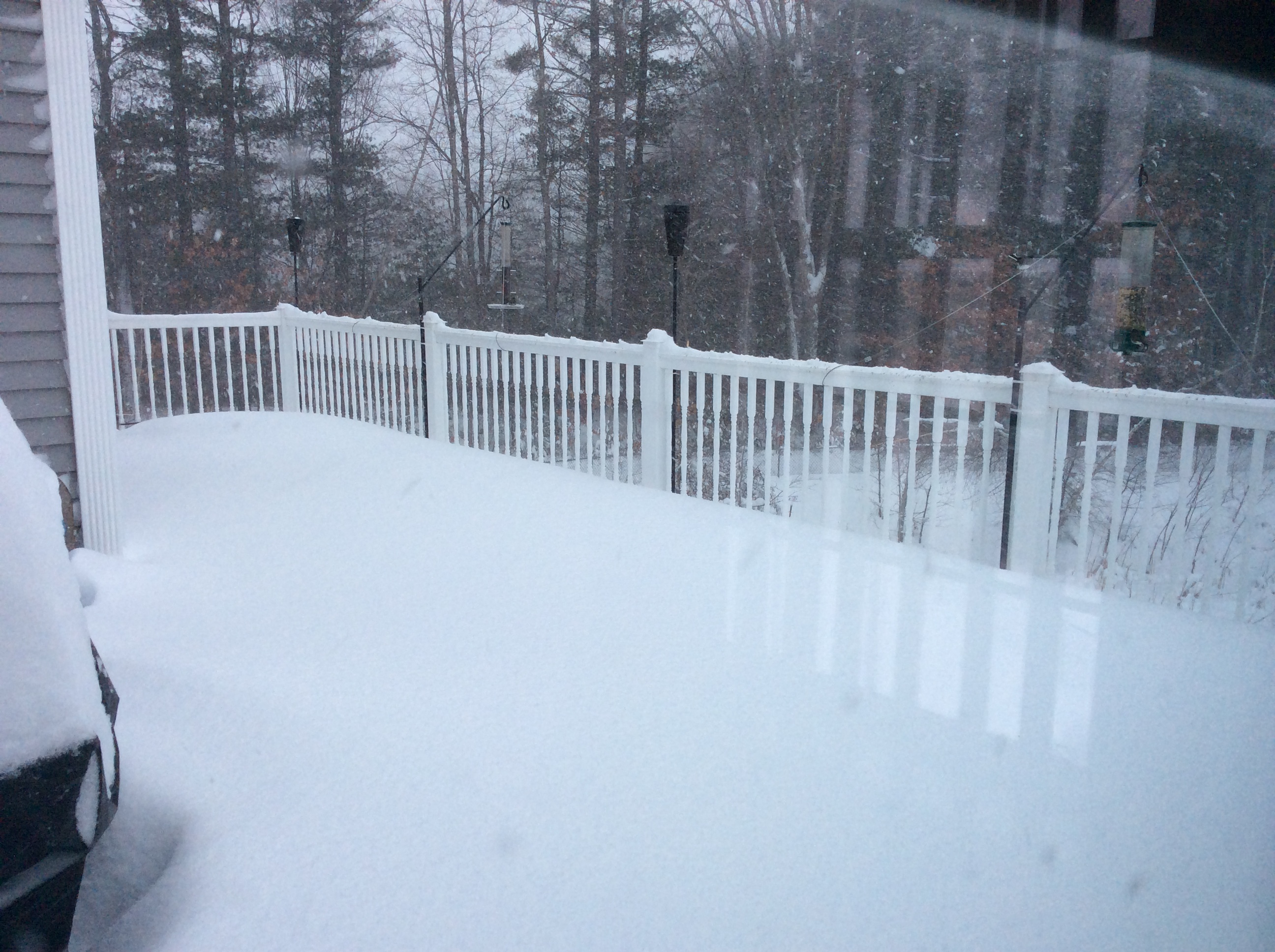 I took these pictures from my windows as I watched the snow come down. Some windows have snow half way up. My husband has shoveled our back deck twice in between the storms and now there is at least two feet more on the deck.