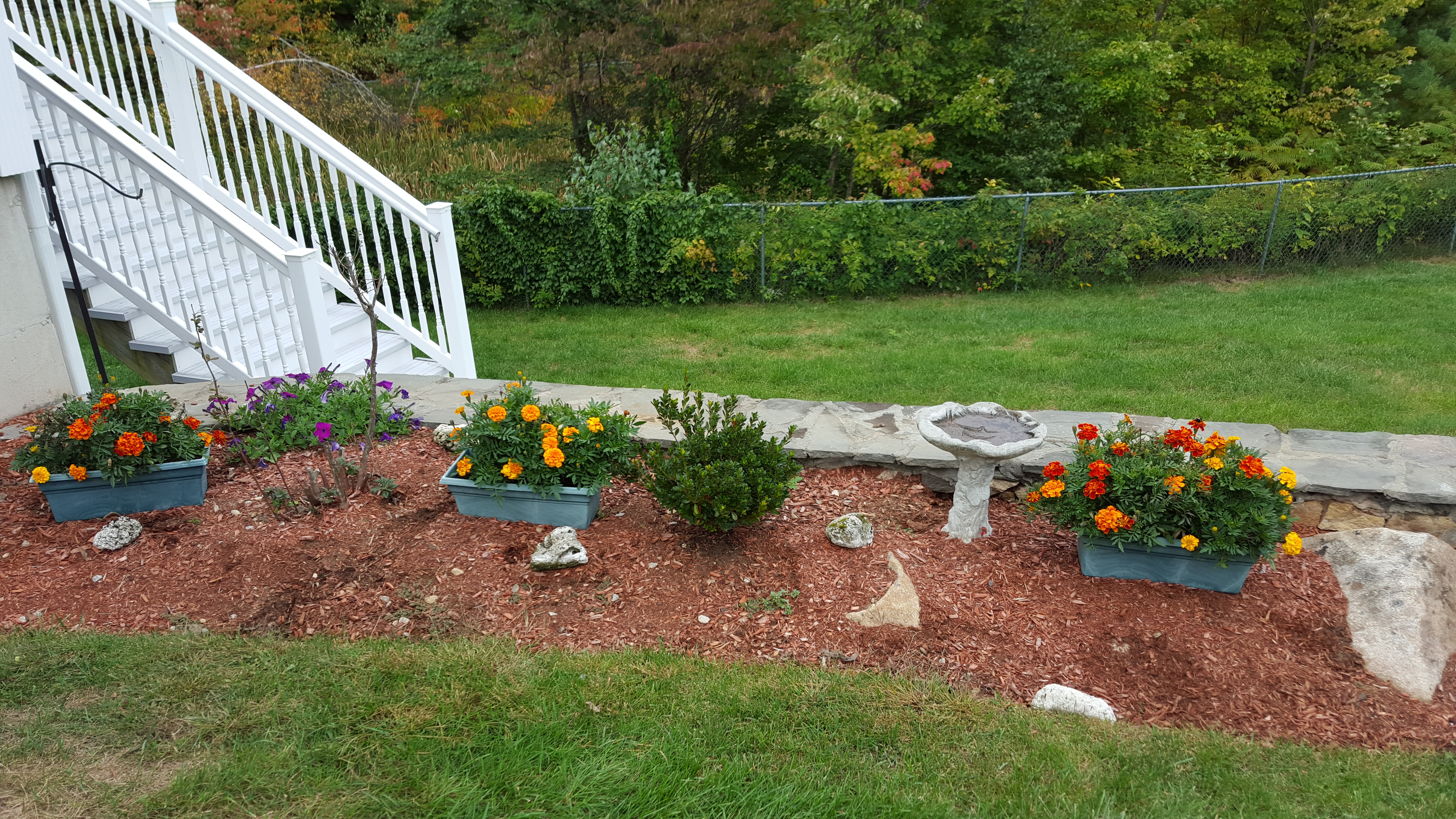 I took some snaps around the yard to show the beauty of the last vestiges of Summer’s flowers, fall decorations, and some of the brilliant beginnings of colorful trees.