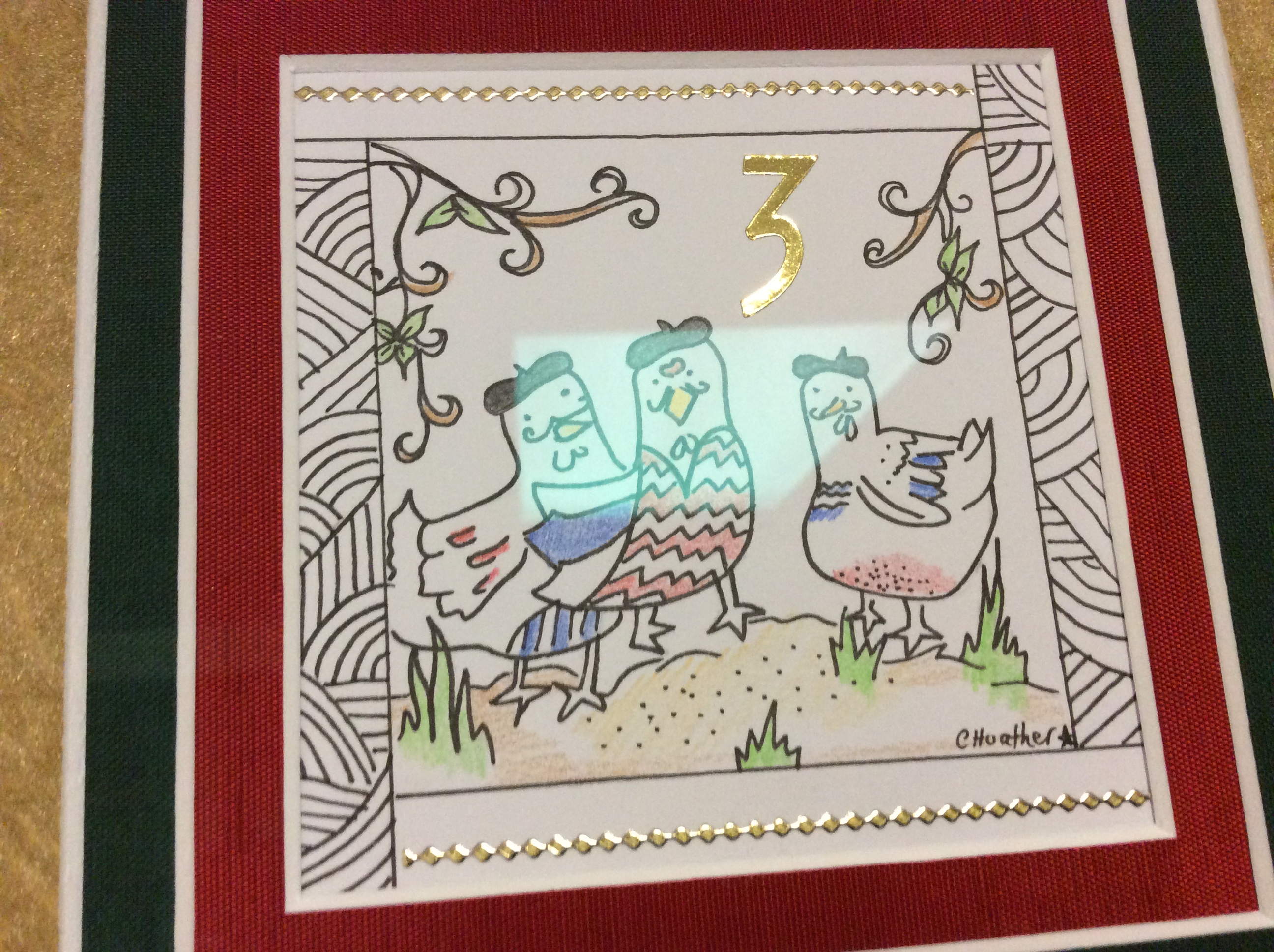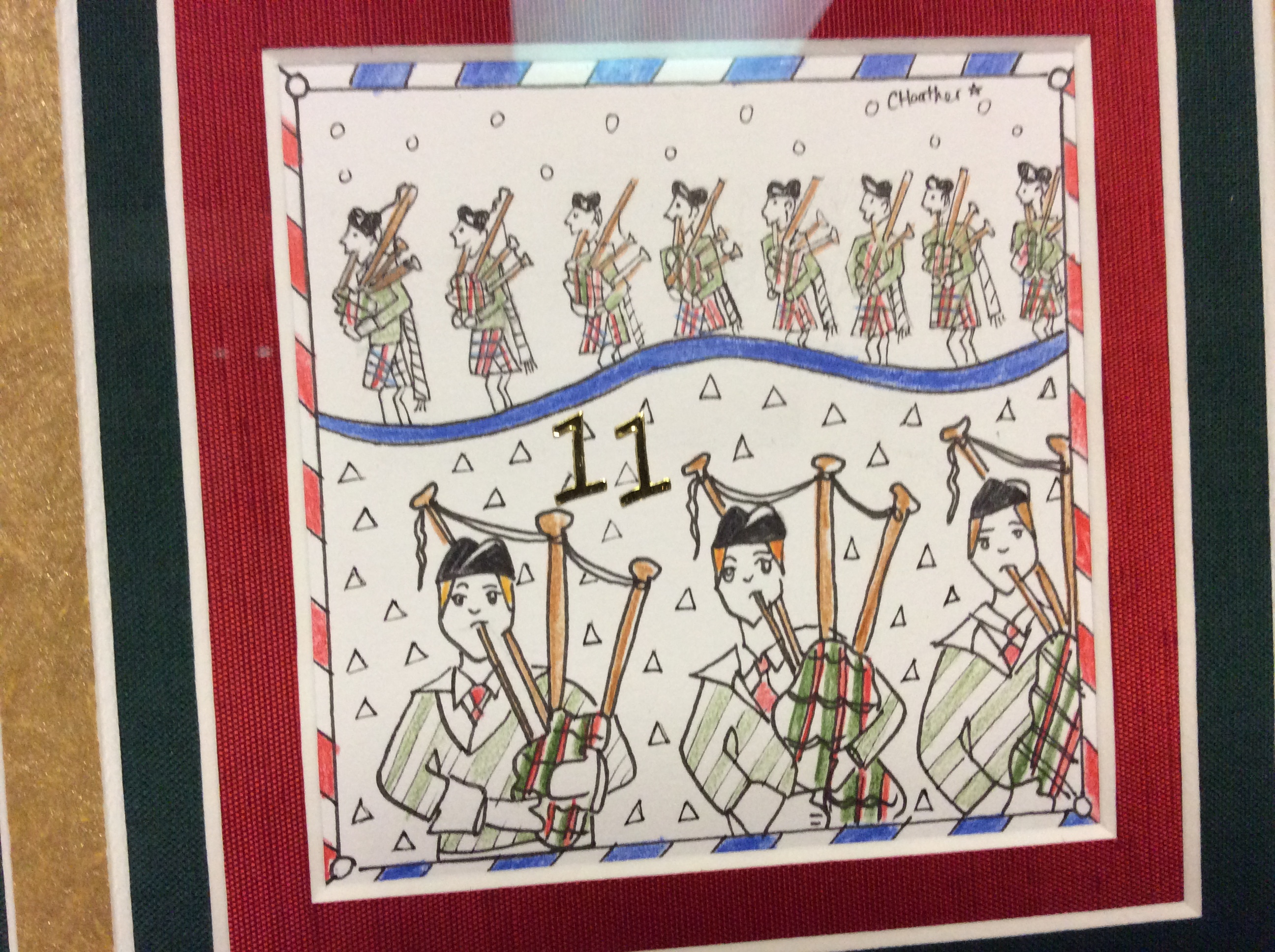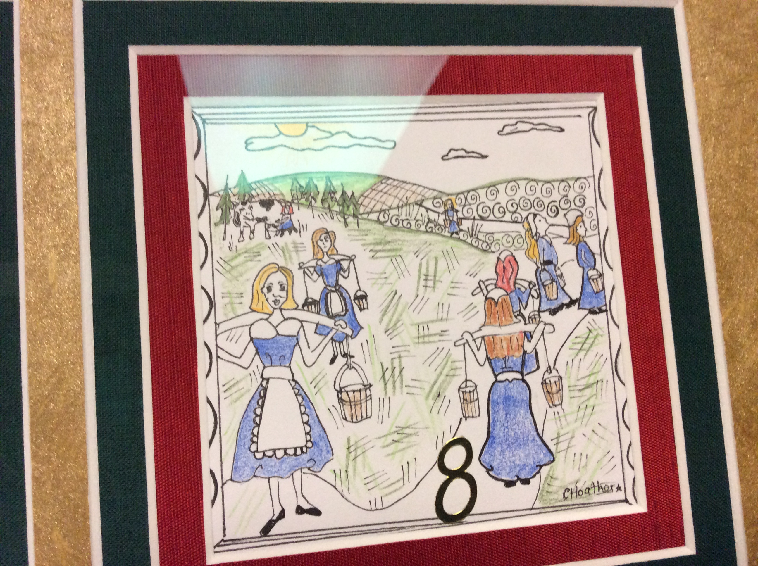 Two years ago I was lucky enough to win these beautiful drawings of the 12 days of Christmas created by Charlotte Hoather when I took part in a contest by this talented soprano on her blog, charlottehoathersblog.com.
