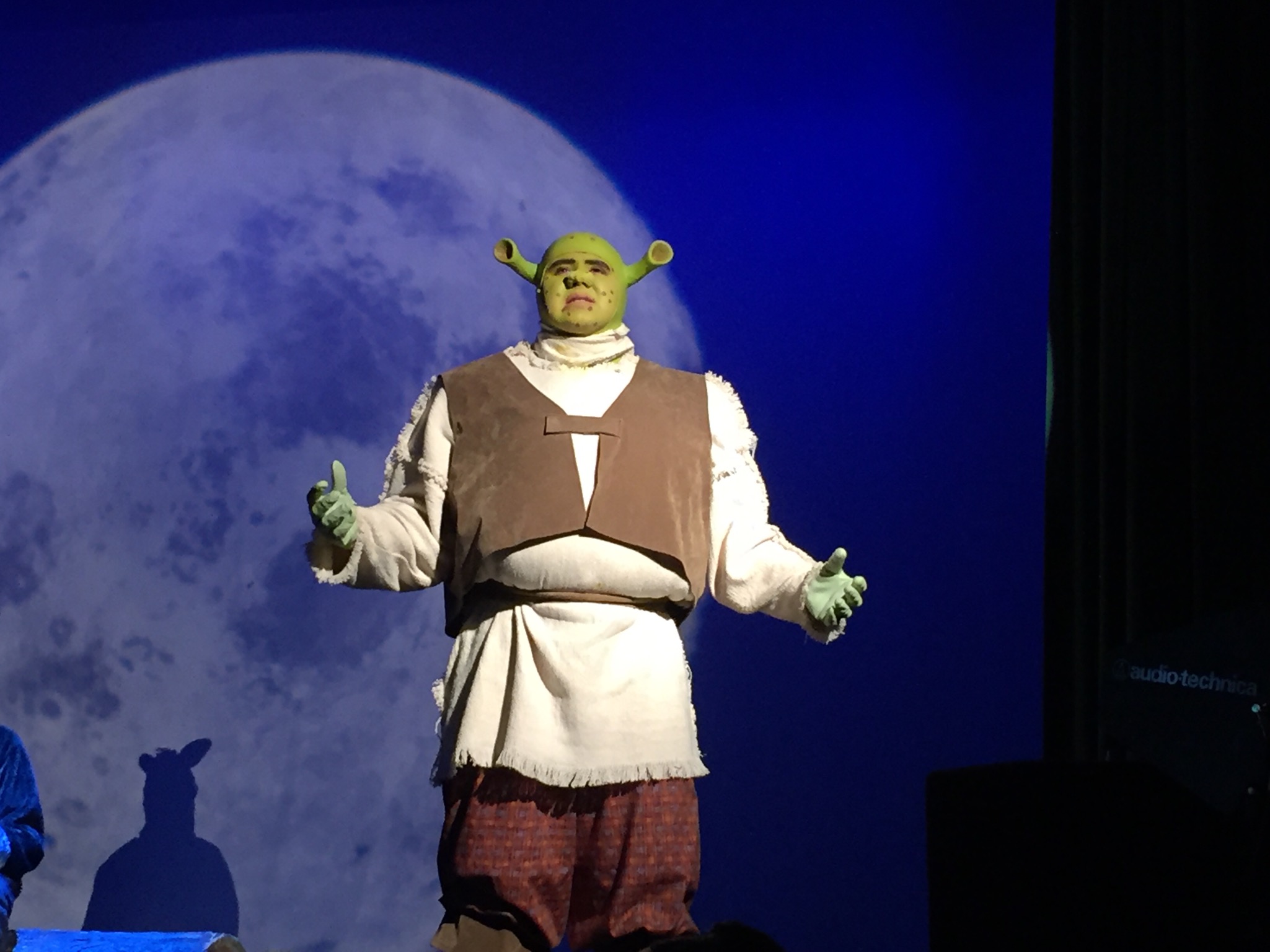 Three girls of varying ages played Fiona, who becomes Shrek’s love. They were all beautiful in their roles and sang like angels.