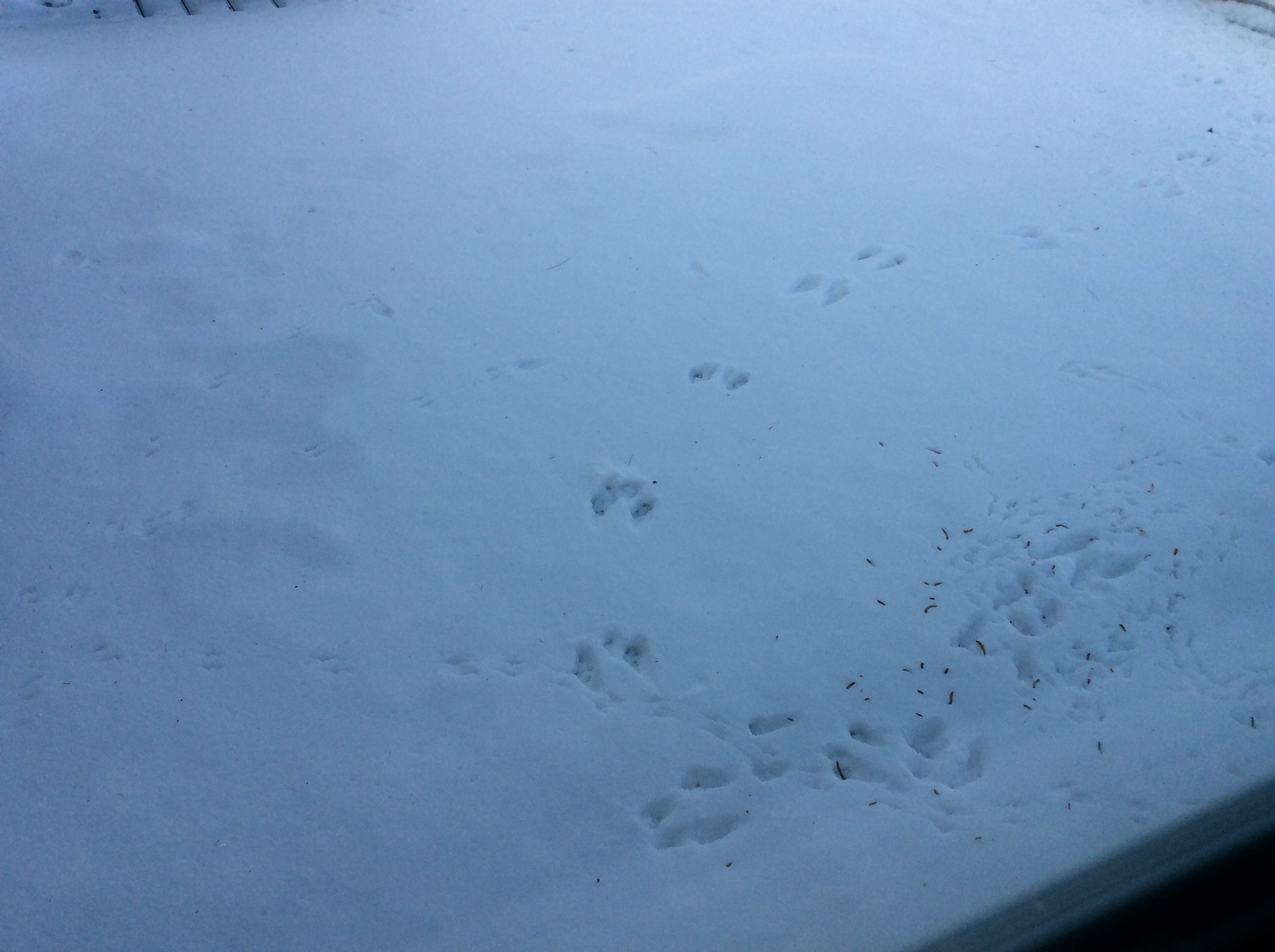 The one thing I like about the snow is that all the animal tracks are more evident. By the multitude of tracks in these photos you can see there have been many deer, rabbits, and all kinds of birds including turkeys all over our yard.