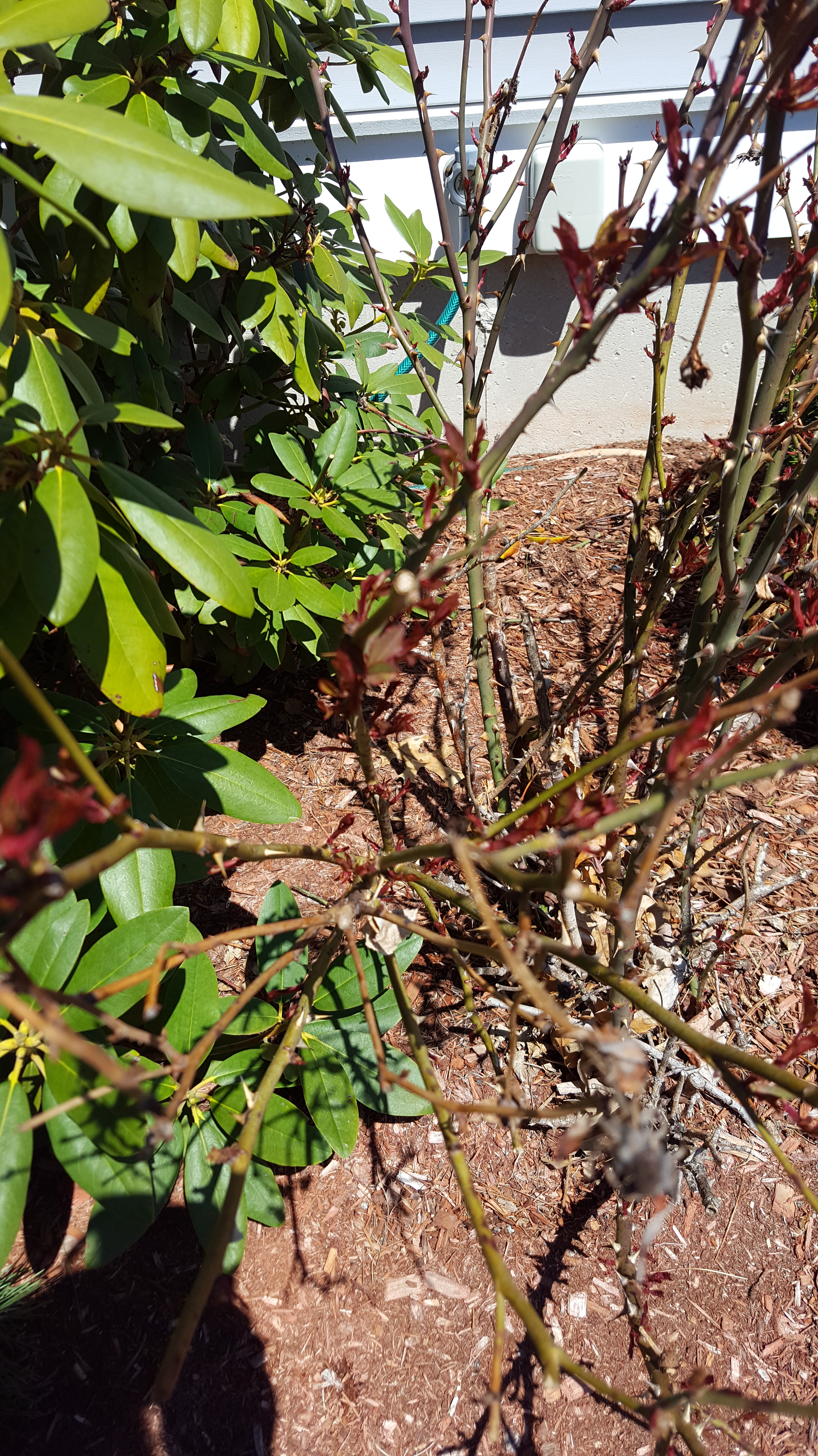 This bush will be magnificent when it is in full bloom with its prolific red blossoms. I will be sure to share some pics of its beauty in the summer.