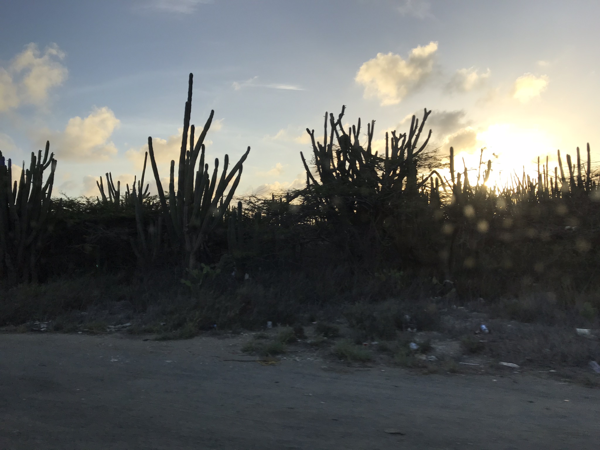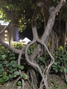 This is one of the trees that grows roots above ground and plants itself as the roots reach in all directions. There are Divi Divi trees that grow in the direction of the wind (mentioned above) and all kinds of Cacti which are indigenous to the island. The palm trees are not indigenous but flown in from other islands. Aruba is not a tropical island but a desert.
