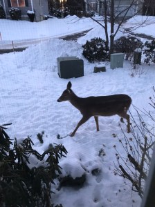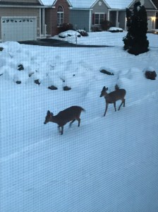 A couple of days ago these deer were outside my front window on the right and in my backyard on the left. It hadn’t even gotten dark yet. They always wait after dusk to roam around out in the open like this. But because of the extreme cold snap we have been in for a couple of weeks they are starving. I threw out some cereal for them but they ran away. The birds and turkeys had a field day with it instead.