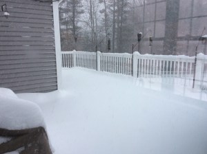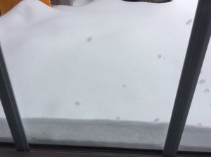 This last photo shows how the snow is piling up against our slider. Luckily I bought John an electric shovel to take care of the deck. He used it once and loved it. If there is any wind at all he will be covered by the snow that gets blown out. It is quite a sight to see a moving snowman!