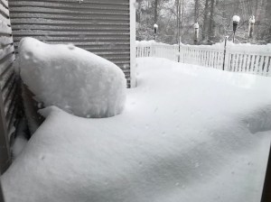 Here in the Northeast (New England) USA we still have snow that blankets our yards. It was officially spring a day ago but where is it hiding? The photo above is of our deck on March 8th from the first of four snowstorms.The snow was more than half way up our railings and at the sill of our window on the deck.