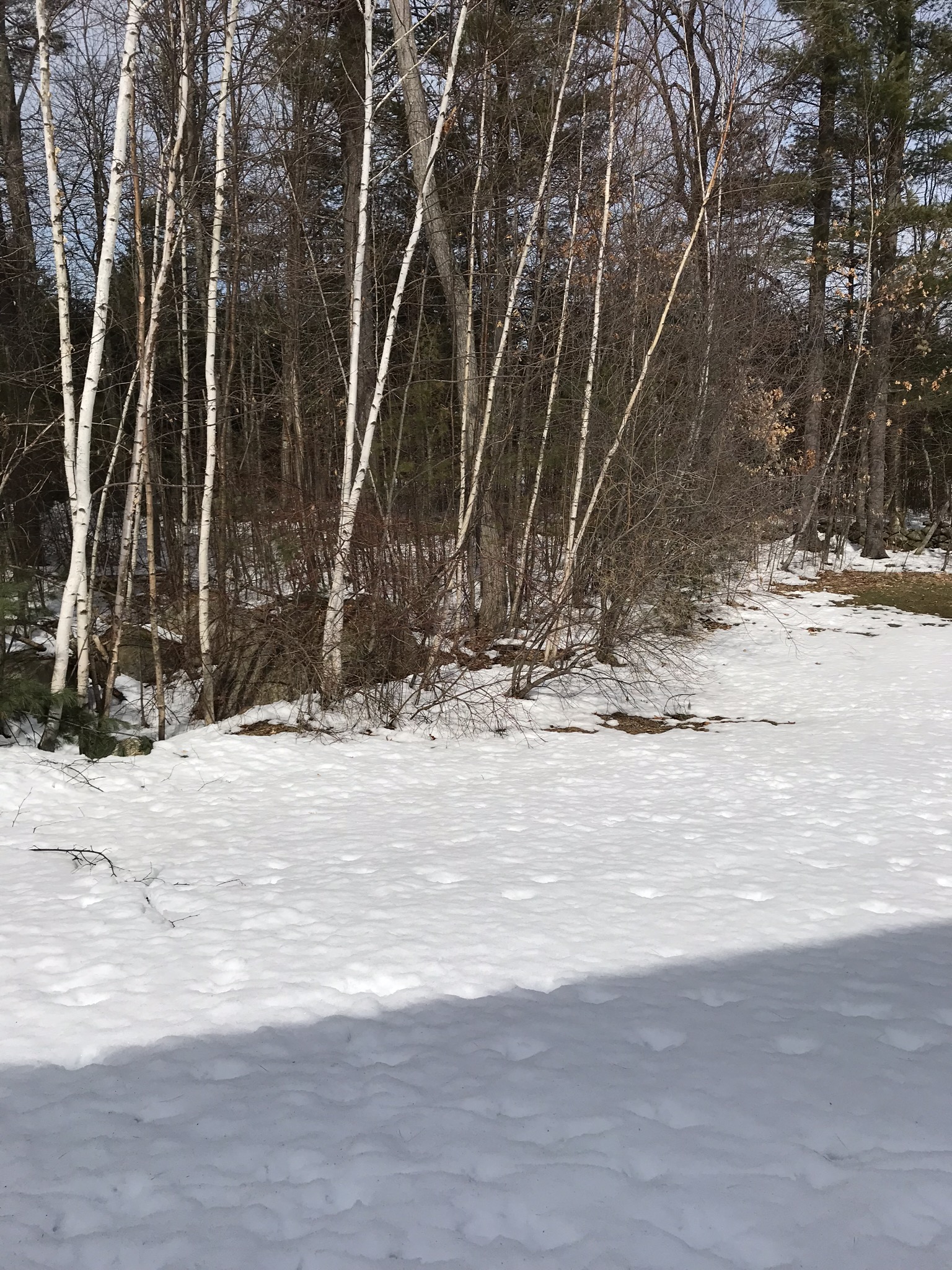 The photo above was just a couple of days ago on March 22nd. During the night of March 23rd we received a dusting which covered some of the bare grass that was peeking out. Alas, this is the end of the snow! I hope! We will appreciate all this water when the weather is in the 90’s in the summer and the wells are getting low. New Englanders are hearty stock and think positive when we have this much snow. It is for a reason. Sigh!