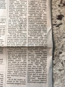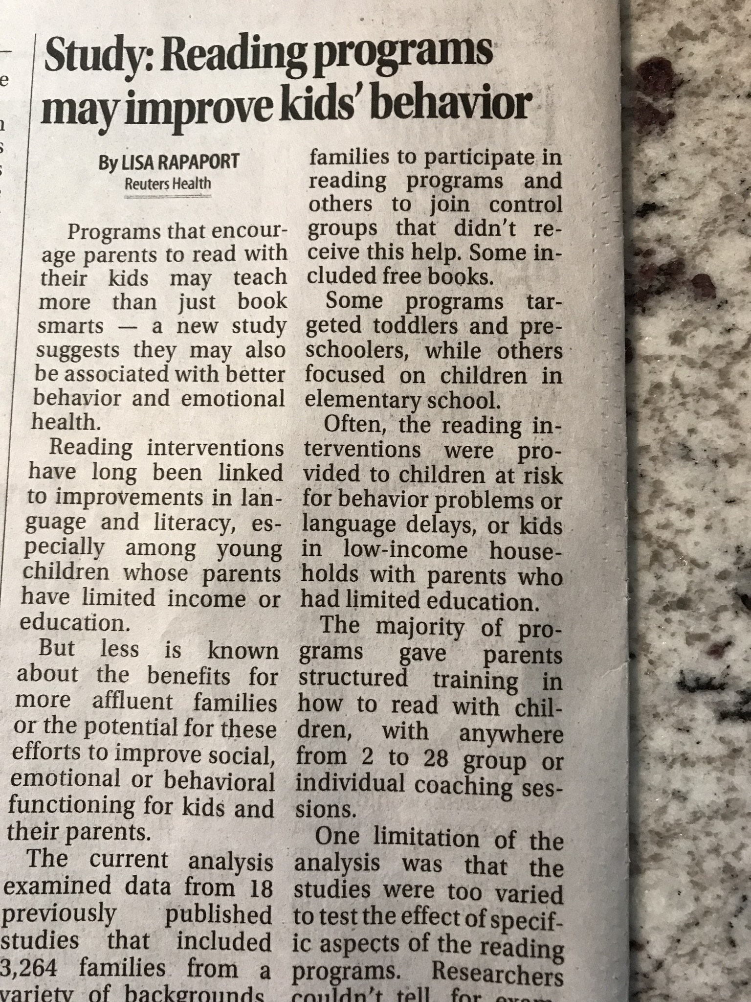I found this interesting study about reading  by Lisa Rapaport (Reuters Health) in the New Hampshire Union Leader on Thursday, March 29, 2018 on page 84. This may be enlightening to many parents who have children with behavior problems.