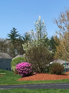 My husband and I try to walk every day 2-3 miles, sometimes more, around the neighborhood. On this particular trip I took many photos which drove John utterly crazy. I stopped every few minutes to admire trees budding, flowers springing up, and grass growing greener to the eye.