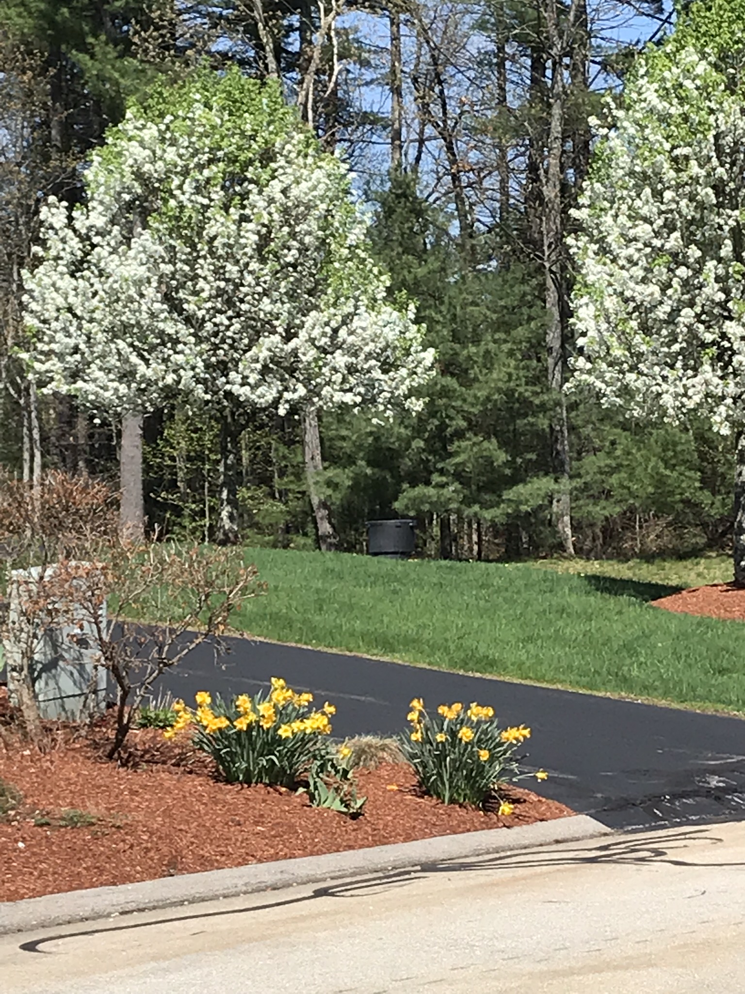 My husband and I try to walk every day 2-3 miles, sometimes more, around the neighborhood. On this particular trip I took many photos which drove John utterly crazy. I stopped every few minutes to admire trees budding, flowers springing up, and grass growing greener to the eye.