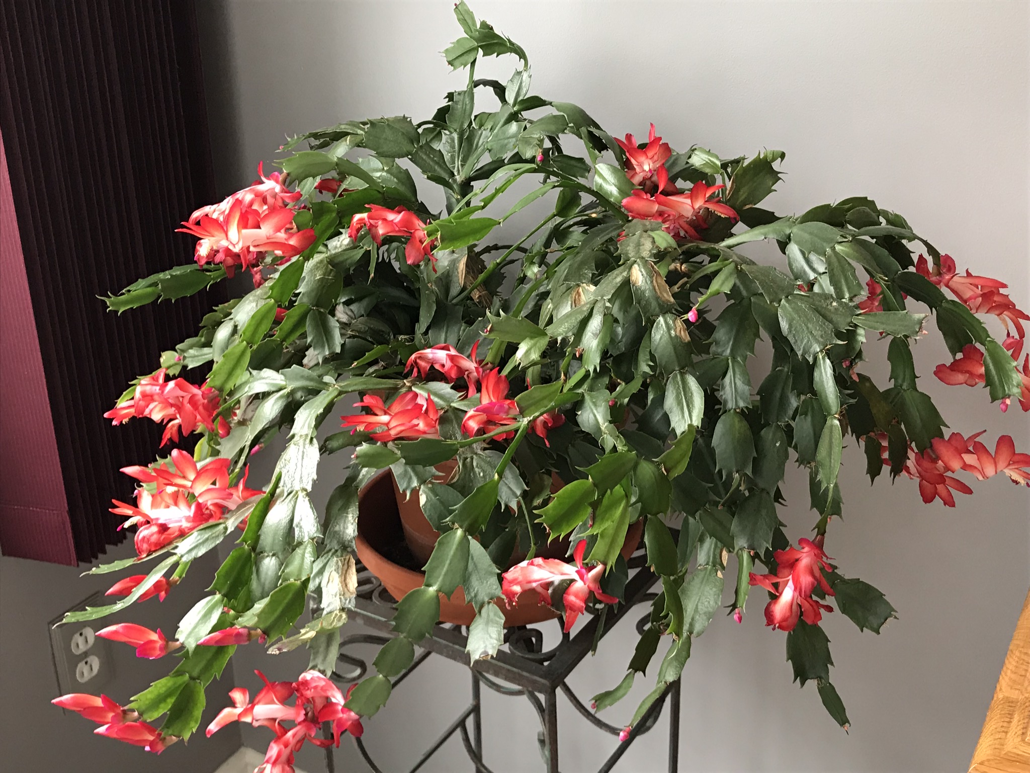 There is beauty also inside to share. My Christmas cactus flowers around Thanksgiving and Christmas but also around Easter. It is now in full bloom and is just beginning to drop some of its pink flowers.