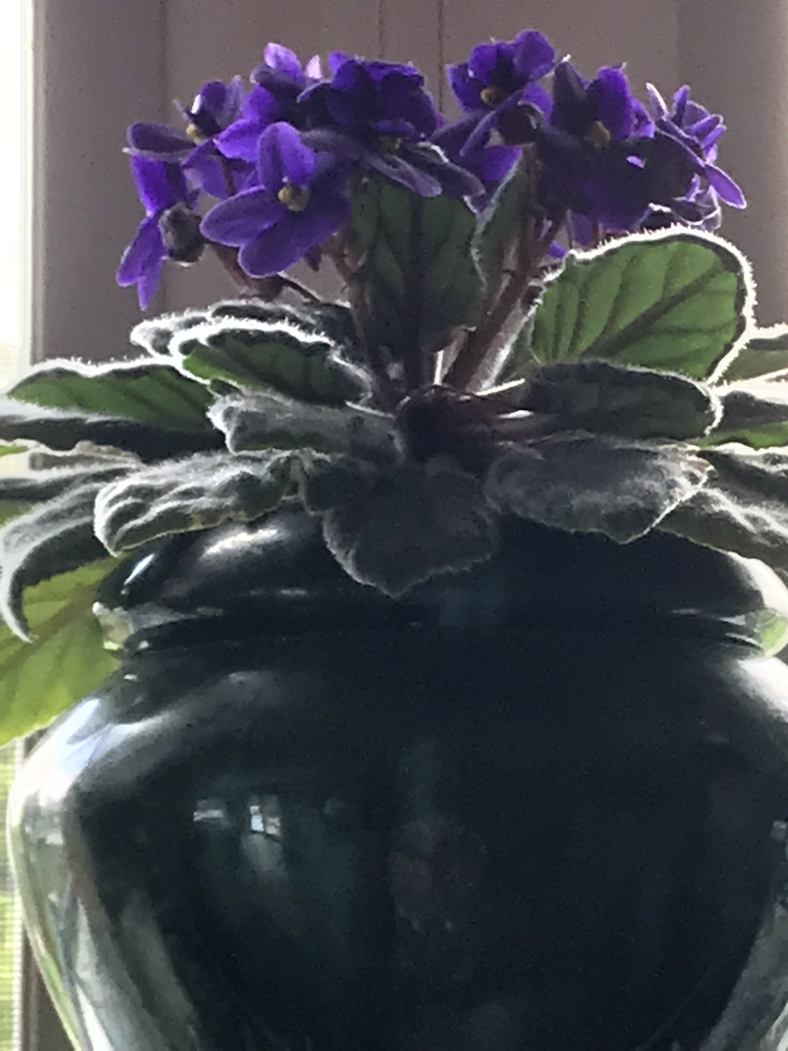The violet is wearing its deepest purple flowers to show off and the lily lives off of the beta fish which in turn gets its nutrition from the plant.