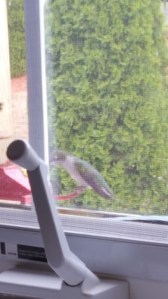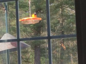 Another unbelievably beautiful bird is the Baltimore Oriole. The beauty of this bird cannot be captured in my photos here. You must see one to believe the vibrancy of its colors – brilliant yellow and black. It has a strange call which sounds like clicking similar to that of a chattering chipmunk. It’s a distinctive sound and when we hear it we run to the back deck. This is where the Oriole feeder is kept.