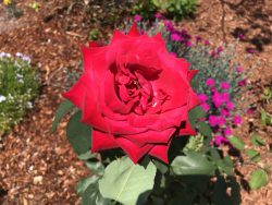 I was thrilled to discover the first rose of spring – almost summer – in the circle in front of our house. Check out this gorgeous flower!
