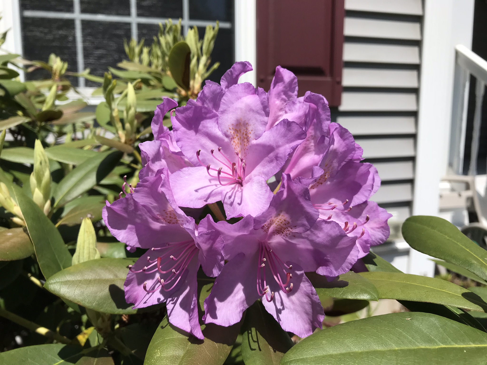 Below are the rhododendron in our front yard and dahliahs showing off their lovely pink petals.
