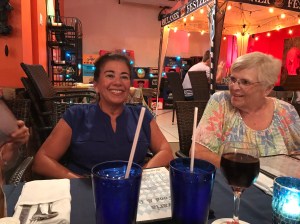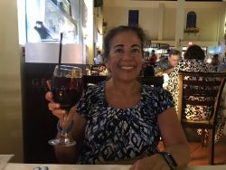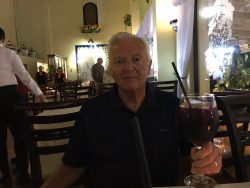 This is last night at the famous Gianni’s Italian Restaurant. Everyone must try this restaurant when they are down here. They have a wall above of cheese balls in which they make Pasta Fromaggio – pasta and cheese (expensive version of mac and cheese). They put on a show doing it. Sorry I didn’t take a photo of my Linguine Fruitta de Mare! It was delicious with clams, shrimp and calamari! But John snapped a photo of me enjoying my favorite – red sangri! Love it more than just wine now!
