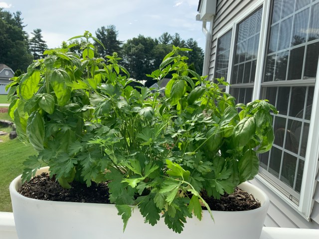 Basil and parsley are growing wild above. We can’t use it fast enough. Basil is delicious in tomato sauce and in caprese salad.
