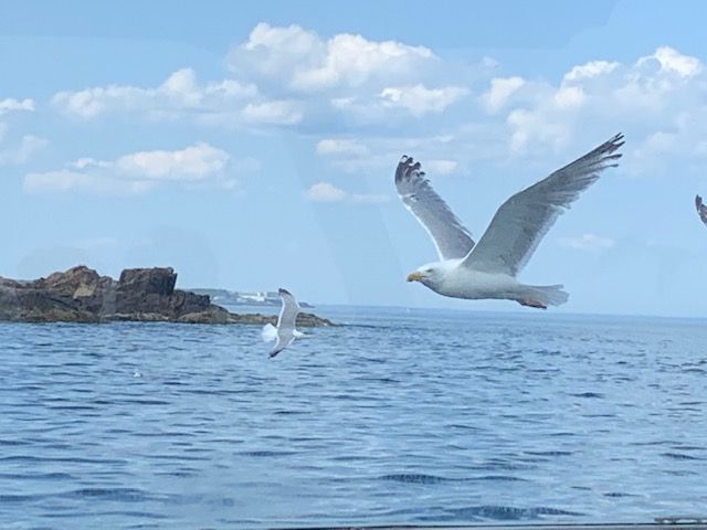 Seagulls in flight from our boat trip to Nubble Lighthouse