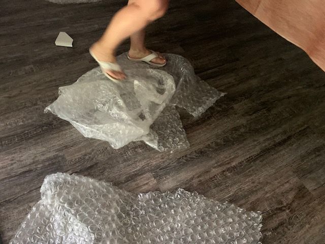 This is such a silly post! I apologize for frivolous use of my blog for this purpose. If you haven’t tried this before, please do it! Of course, you have to get some bubble wrap first. Sometimes Amazon or other places send items with it. Have fun and burn calories at the same time! Get the whole family into it. The kids will love it!