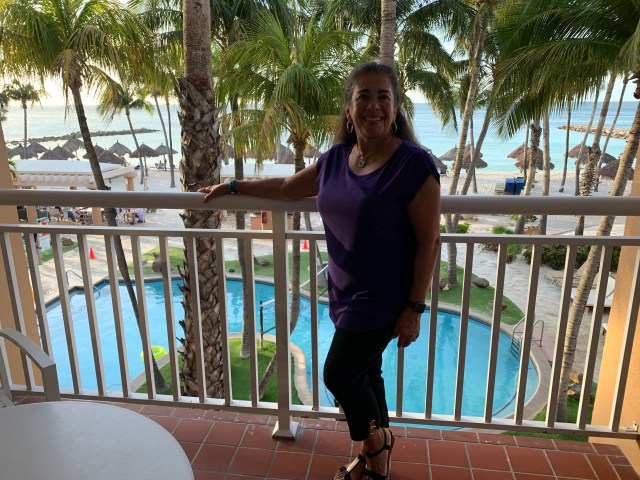 It’s Friday, our last night in beautiful Aruba! We will miss waking up to look out at the gorgeous shades of turquoise to dark blue water each morning, eating on our lovely balcony, both breakfast and lunch, and soaking up the sun as we take our daily walks. Ahh! I am already missing our home away from home! Sigh!