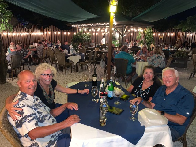 We always dine at Yemanji’s (one of our favorite restaurants) downtown in Oranjestad with friends. It is dining in a courtyard setting with food cooked on a wood fired grill. Delicious!