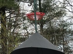 My husband puts out the feeders for both the hummingbirds and the Oriole at the same time in early May. That’s when they are both expected to arrive. It’s quite an exciting time to see them return each year to the same feeder.