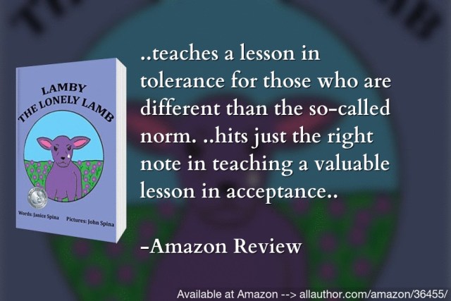 Lamby the Lonely Lamb is about a little purple lamb who has no friends because of his color – he is different from the other lambs. Lamby won a Silver Medal from Mom’s Choice Awards where all mothers go to shop for their children’s books.