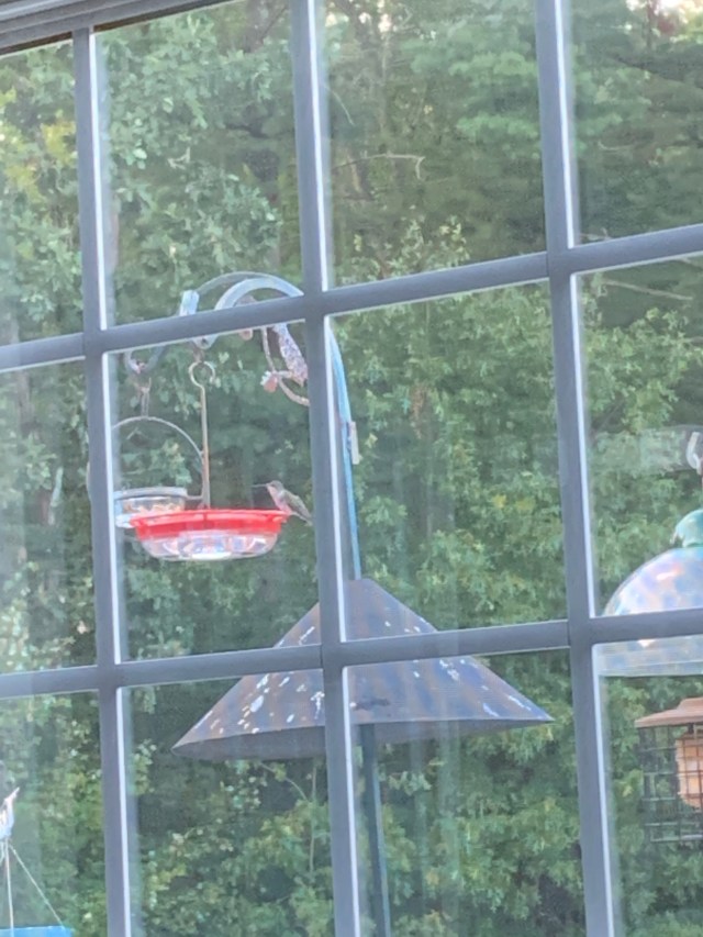 We have had so many hummingbirds trying to feed at the same time but they fight over space. They don’t want to share the feeders. Alas, we do have three feeders, one on my kitchen window and two on our back deck. There is plenty of room for a few birds to sit at each feeder with social distancing too.