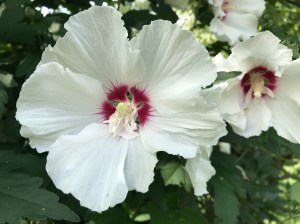 Below is a post I wrote last year in August of 2019 when our Rose of Sharon bushes were blooming profusely. This year, however, in 2020 the blooms are sparse, sad to say.