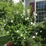 Along with these lovely flowers come the glorious hummingbirds (my favorite bird of all). They are attracted to the deep flower and sweet nectar of the Rose of Sharon blossoms. With so many bushes in bloom you can imagine how many hummingbirds are flying around our yard. It’s fabulous!