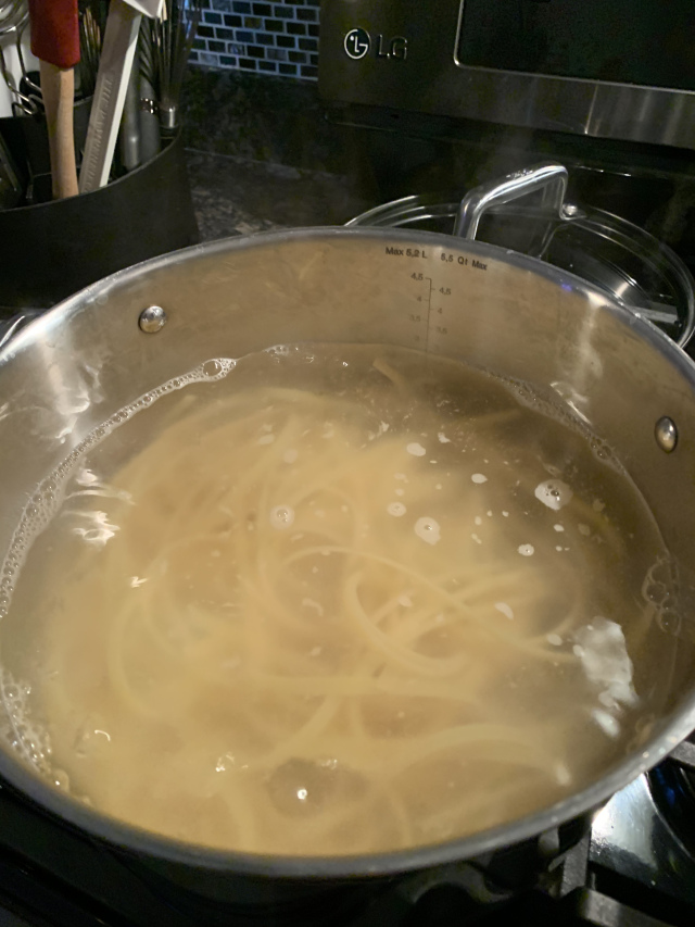 - 8 ozs linguine (I used our favorite – fettuccine)