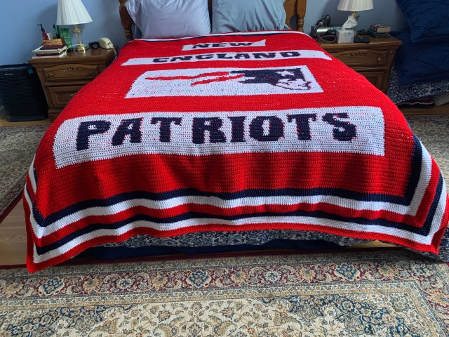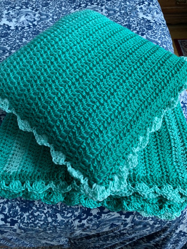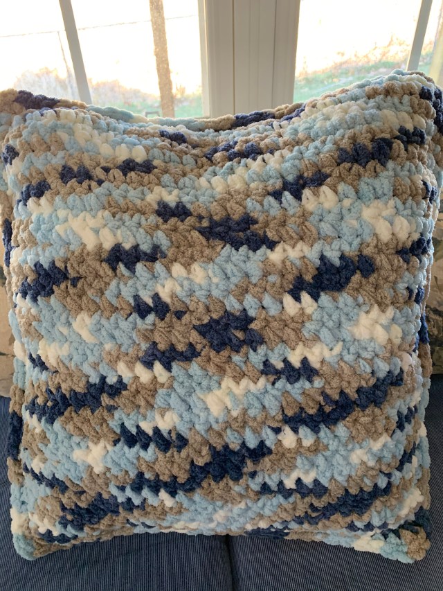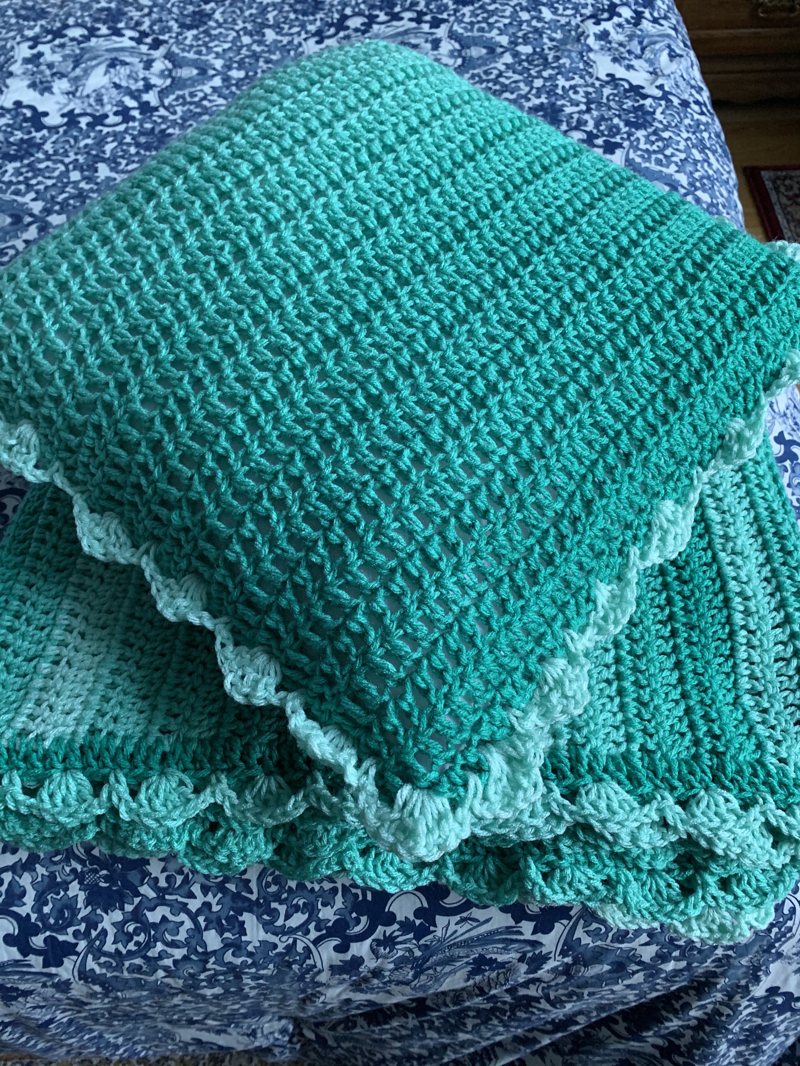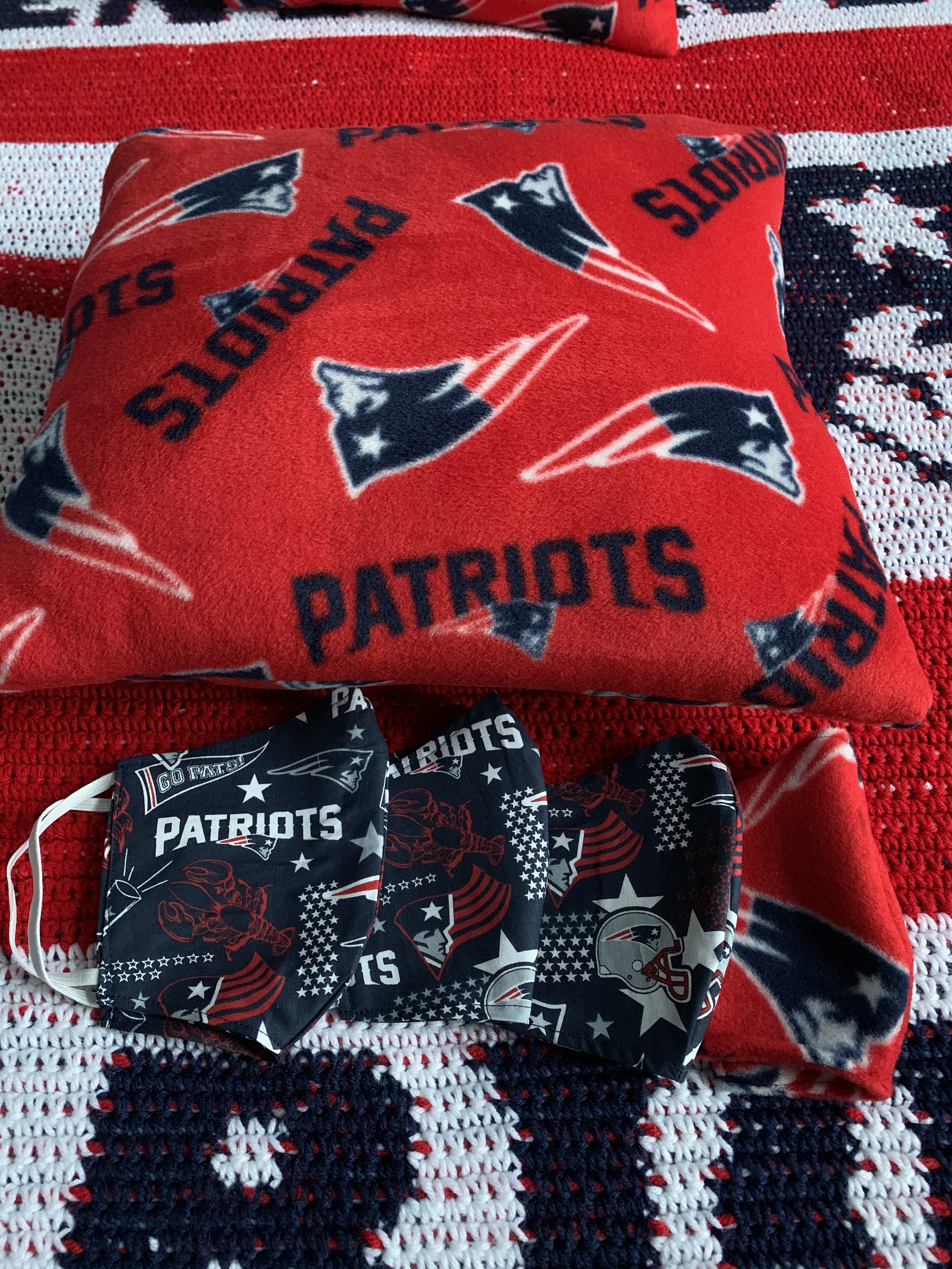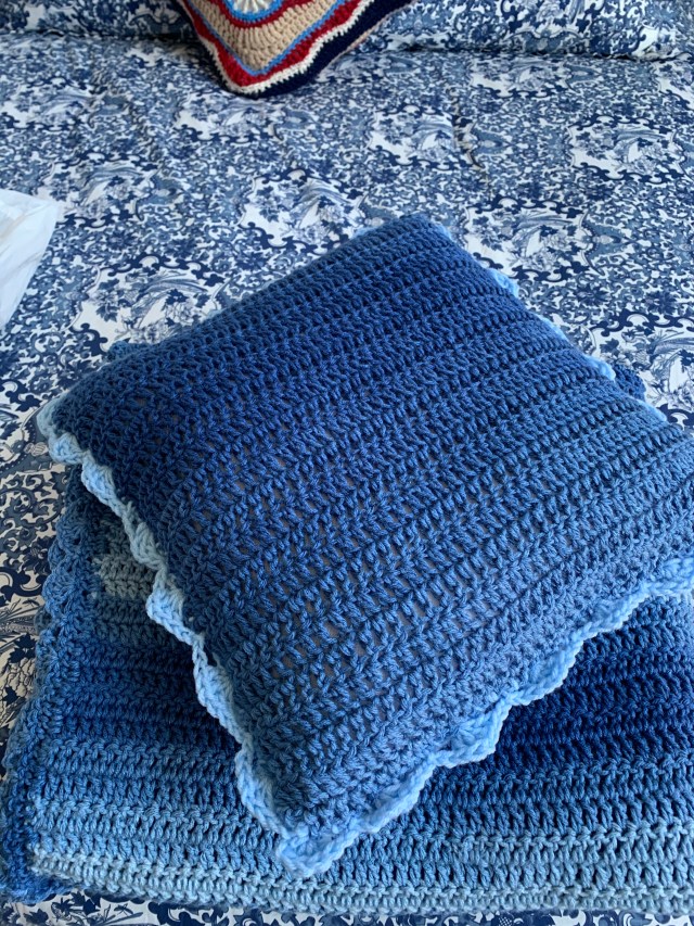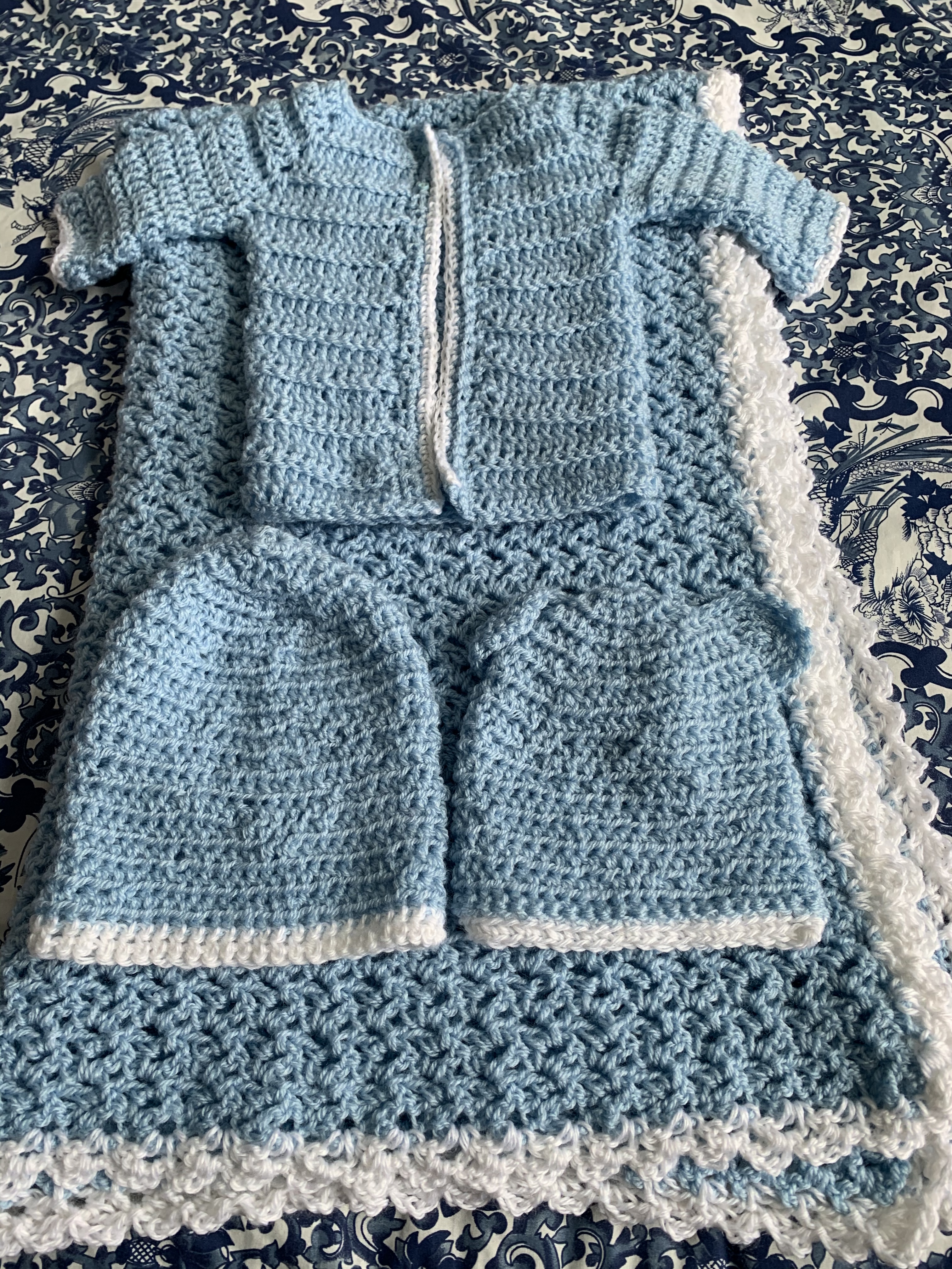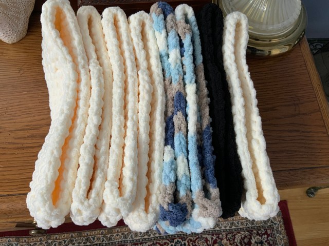 I crocheted 12 afghans, 2 baby sets, 1 hat, 1 sleep mask, 8 pillows, 30 headbands.