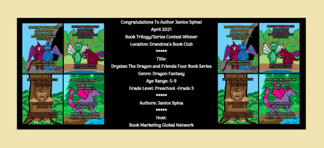 Thank you, Theodocia McLean, for choosing my series, Drystan the Dragon and Friends Series, Books 1-4 as the winner of a series for children on Bookmarketingglobalnetwork.com!