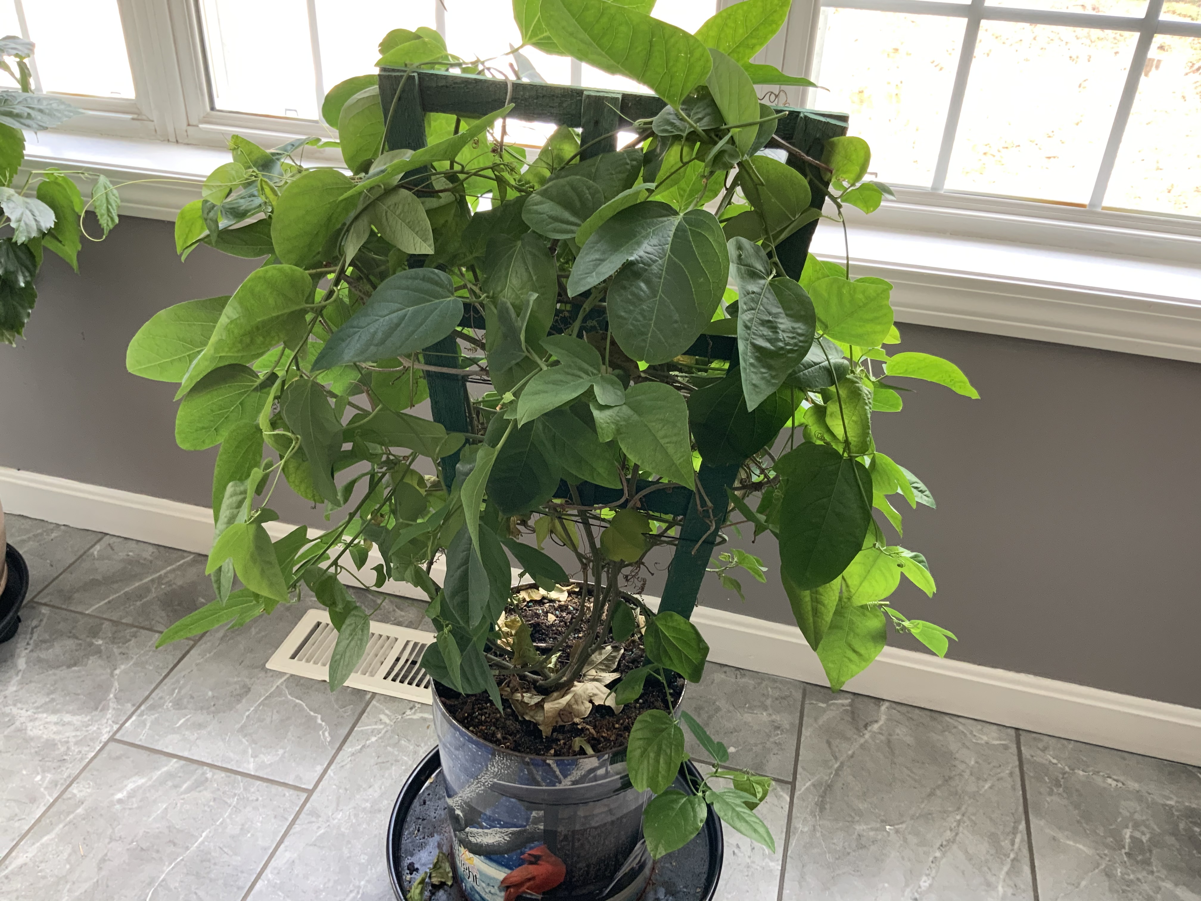 While these plants are in the house only the Hibiscus flowered, producing two lovely flowers recently. It knows it’s time to go outside so it can flower profusely. The Passion Flower plant has not blossomed at all. It needs warmer temps than are in my house at this time.