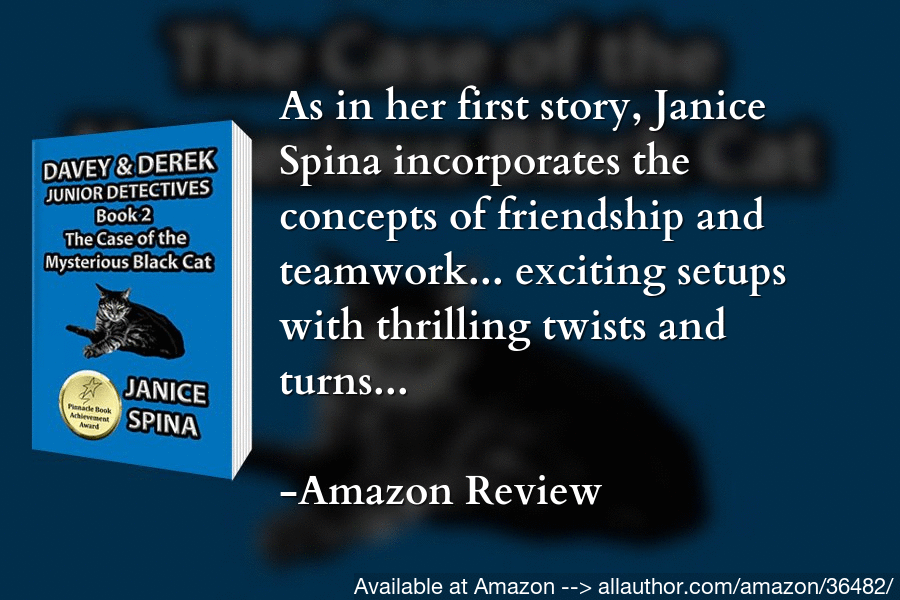 The backstories about Davey, Derek and Mickey are well covered at the beginning of the book, enabling the reader to know the most important details of the main players in the story. It impresses me that Janice Spina wants her readers to have the full advantage of character details to be able to connect with them more, without forcing the reader to buy earlier books in order to do so. The addition of magic to the mystery was a big twist which gave an extra huge element of excitement, adventure and super possibilities for the twins’ future cases which need to be solved. I found The Case of the Mysterious Black Cat to be an excellent magical tale and very much look forward to Davey and Derek’s next adventure. The author’s writing and imagination are incredible. I recommend this book to those in the 7-12 age group, or even the young at heart who love a little bit of magic served up with their mystery.