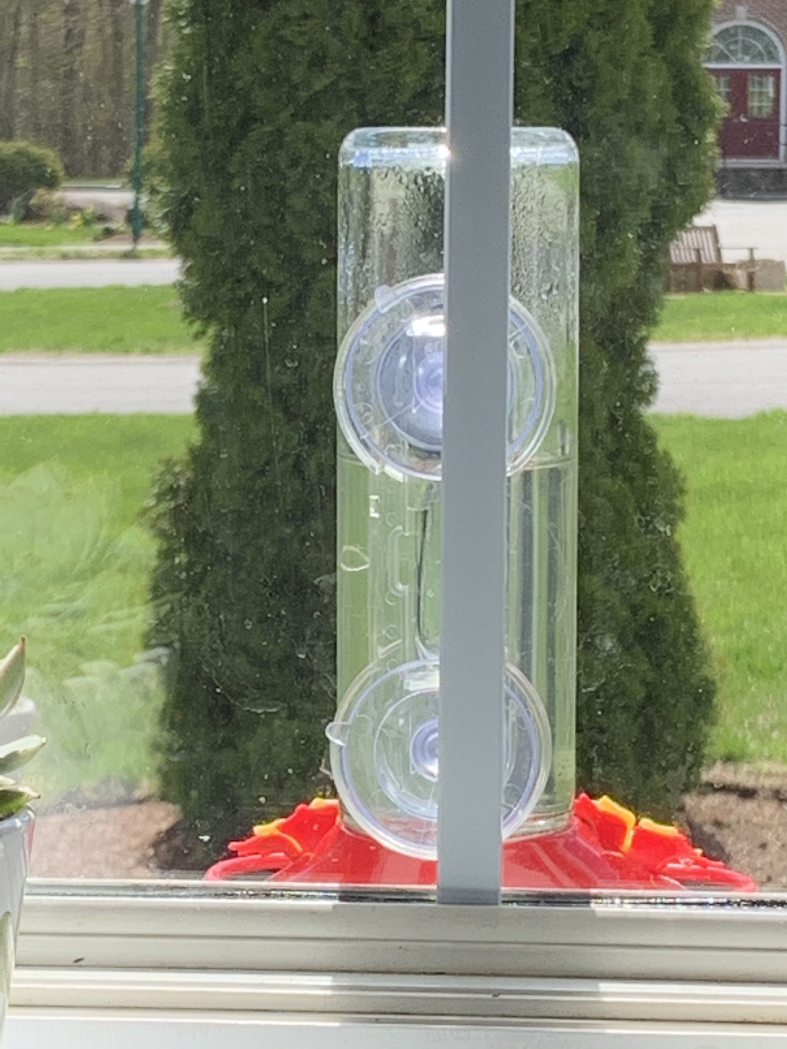 We have set out three feeders since late April. My husband announced he saw one a few days ago on 5/3/21! Sigh! He beats me every year with sightings!