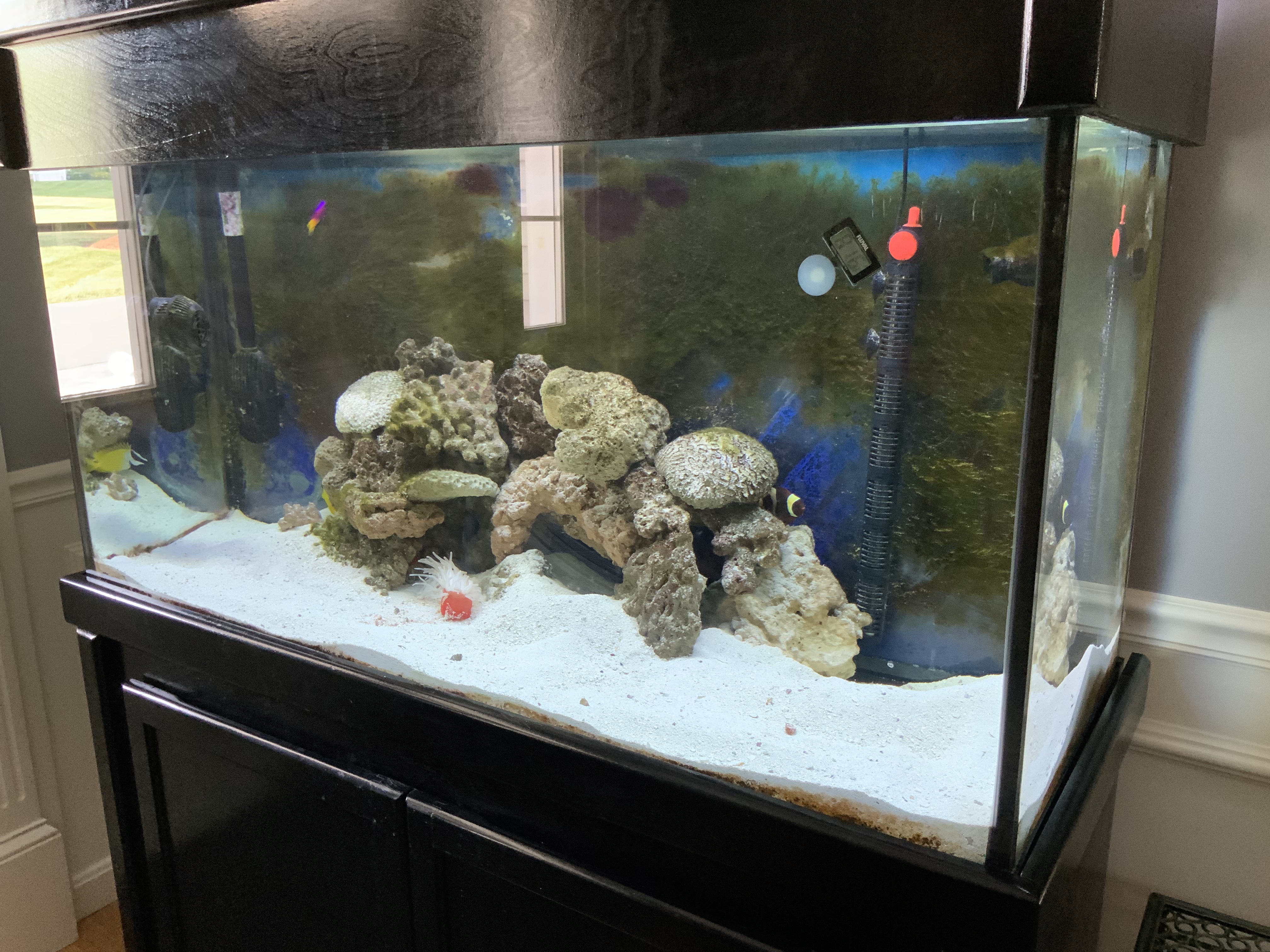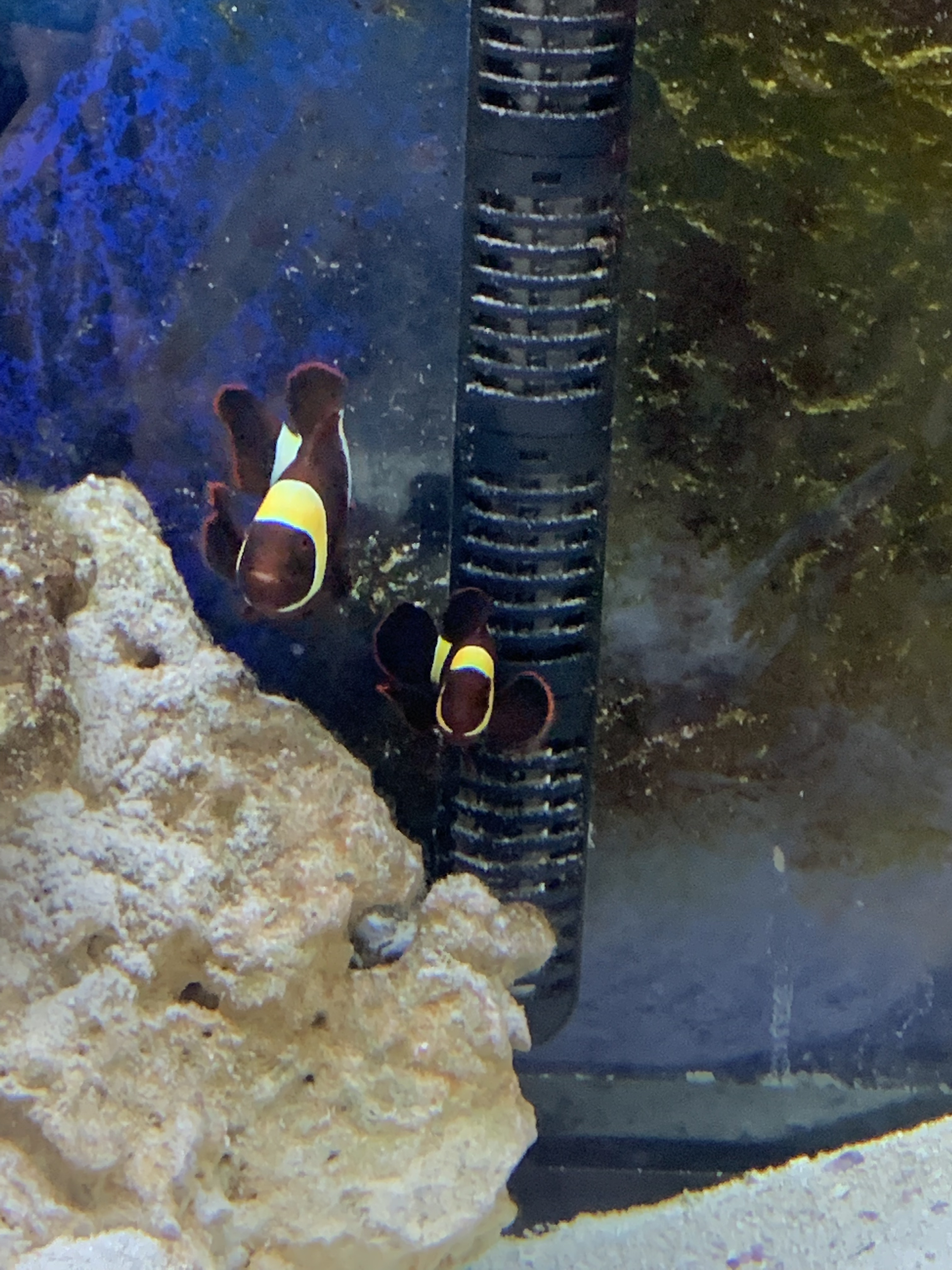 Our 95-gallon saltwater tank is looking so empty with just two clown fish who like to hide and three anemones who like to move around. The anemones are not entirely happy in their new home. If they have a tendency to roam that means that they not yet happy in their environment. I hope they get settled soon.