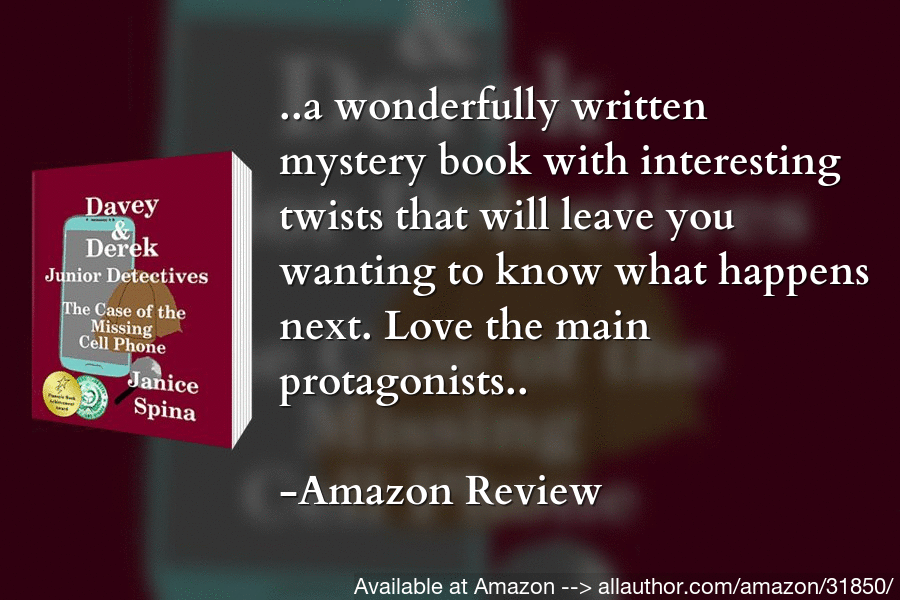 My series, Davey & Derek, have been compared to the Hardy Boys Series many times. In each stand alone book I created a mystery and some intriguing characters that make the stories captivating. Middle-graders will be hooked once they read Book 1 of each series. They will want to read them all. The characters are that engaging and interesting. Parents love these books too. I wanted to create characters that are real with realistic issues and how they solve them. I think your kids will learn how to deal with bullies in a nice way after reading these books.