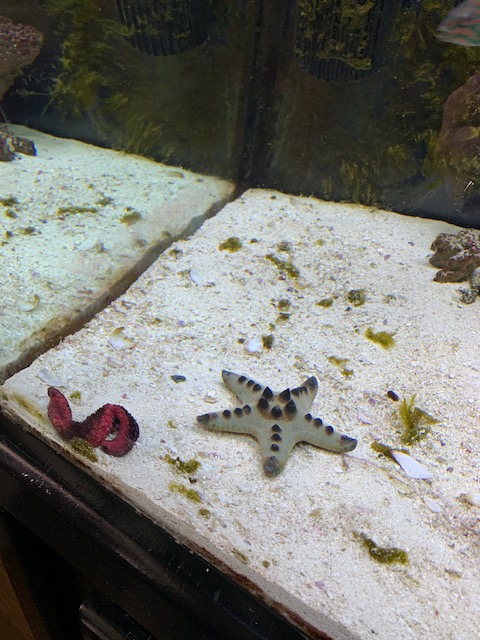 We recently purchased a starfish and a sea urchin to add to our 95 gallon saltwater tank. They appeared to be happy in their new tank and already have found their favorite place to rest.