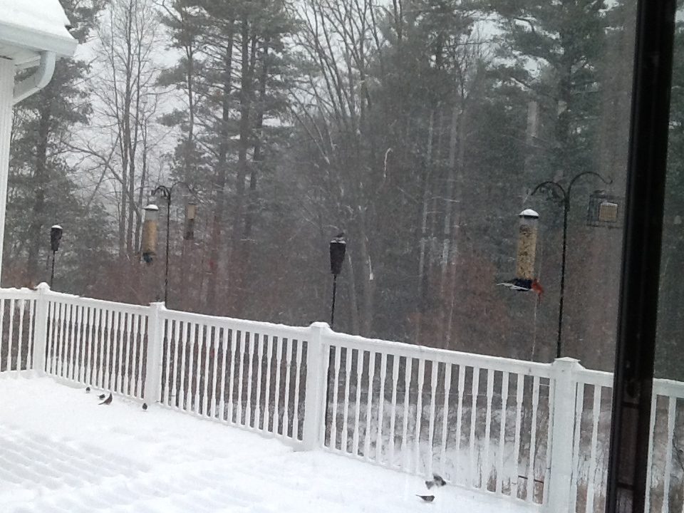 It is amazing that these tiny creatures are so resilient. They fly in and out of our arborvitae bushes where they stay to keep warm. They don’t have to go far for food on our deck.