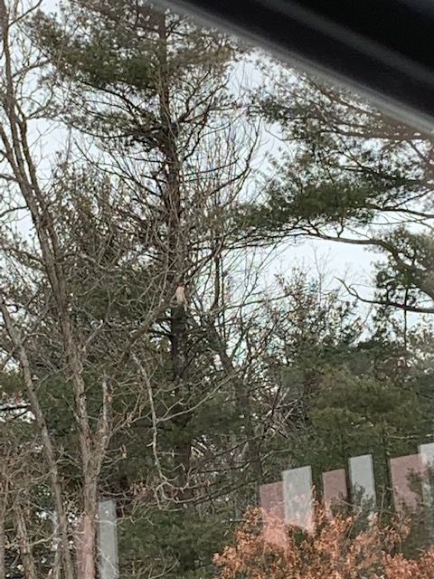 Here is another not so welcome visitor. In this photo you may be able to spot a hawk in the center of the photo in white. I couldn’t get any closer. It suddenly got eerily quiet outside on our deck. This is why. The birds all flew away to safety when they spotted this hawk. He stayed there for a long time until he grew tired of waiting for the birds to come back. Thank goodness he was not successful in grabbing one.